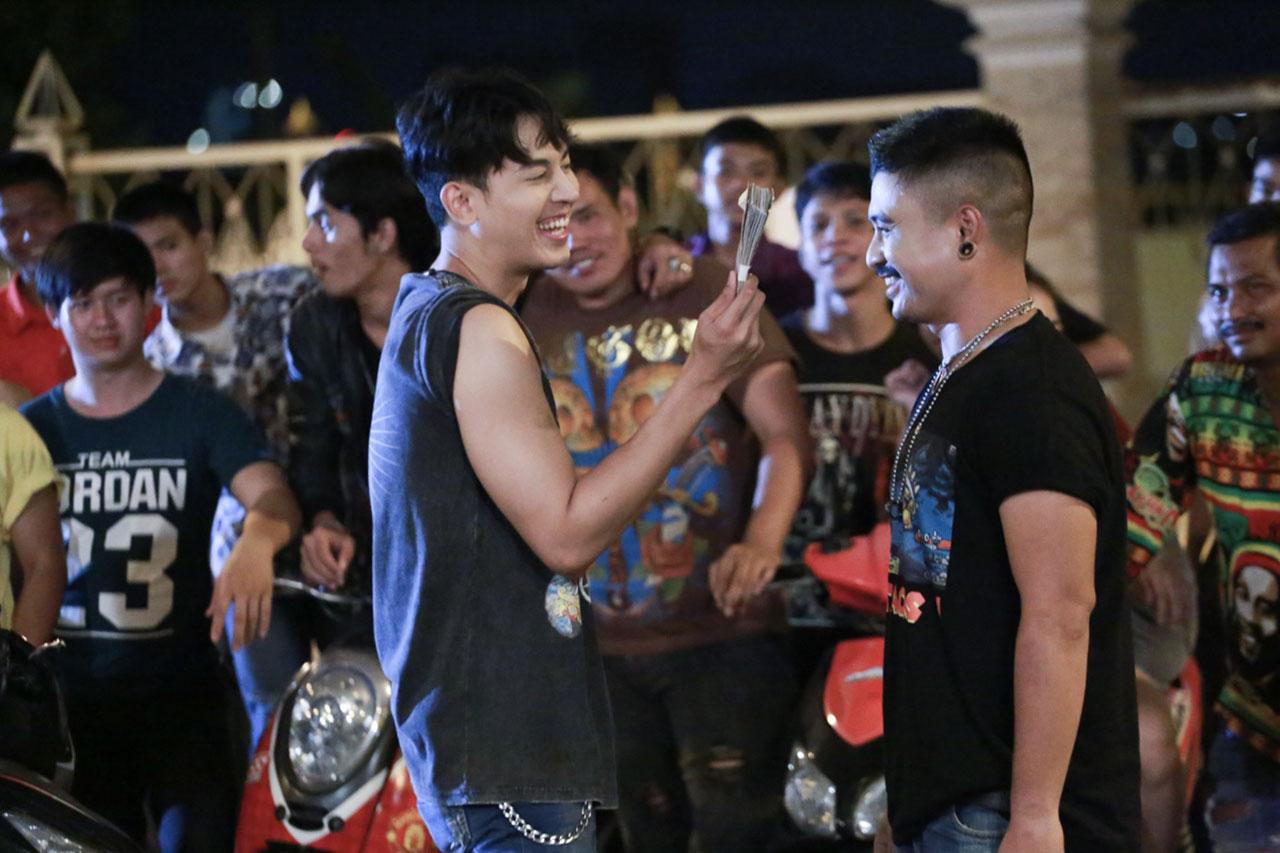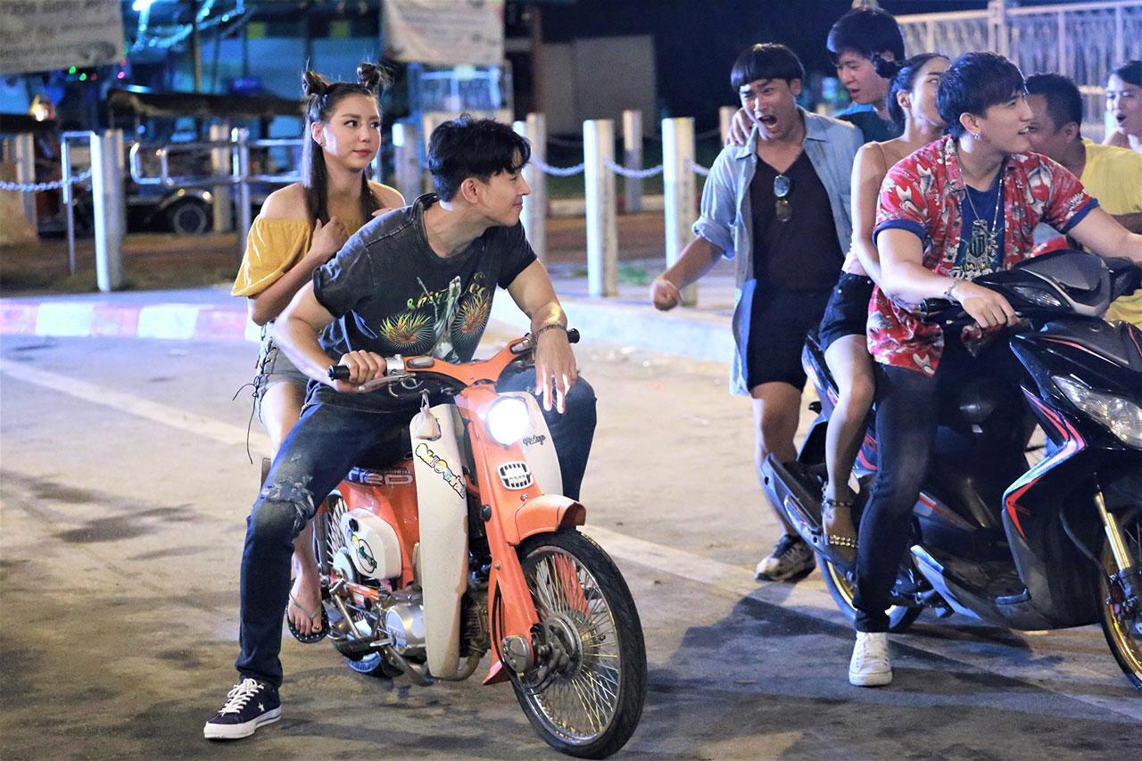 ฉากนี้ถ่ายทำกันแถวใต้สะพานเจษฎาบดินทร์ เป็นฉากที่ทั้ง ป๊อป ฐากูร และ มิว ลักษณ์นารา ต้องพลิกลุคตัวเอง เป็นหนุ่มแว้น สาวสก๊อย น่ารักเชียว แต่พอเริ่มต้นก็ตีฝีปากจะทะเลาะกันแล้ว คู่นี้เจอกันเป็นต้องตีกันตลอด เพราะในเรื่องจ่าวสันต์กวนสาวตลอด แถมฉากนี้ยังแว้นรถได้กวนมาก แทบจะทำให้คนนั่งตกถนน จะไม่ให้หมวดอีกาว่าได้อย่างไร ยังไม่พอ ตอนไปล่อซื้อยา ก็ยังพูดจาน่าหมั่นไส้ แล้วยังแต๊ะอั๋งอีก ทำเอาสาวมิวของขึ้น ด่าไฟแลบ จนกองเชียร์สก๊อย เรียกให้ ป๊อป จูบง้อคืนดี ทำให้มิวหน้าเหวอไปเลย ป๊อปบอกเล่นตามบทนะ มิวจำยอม กว่าจะผ่านฉากนี้ได้เขินหน้าแดงกันทั้งคู่