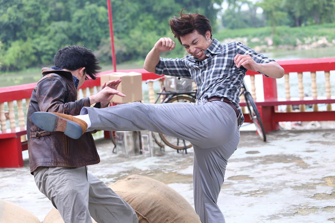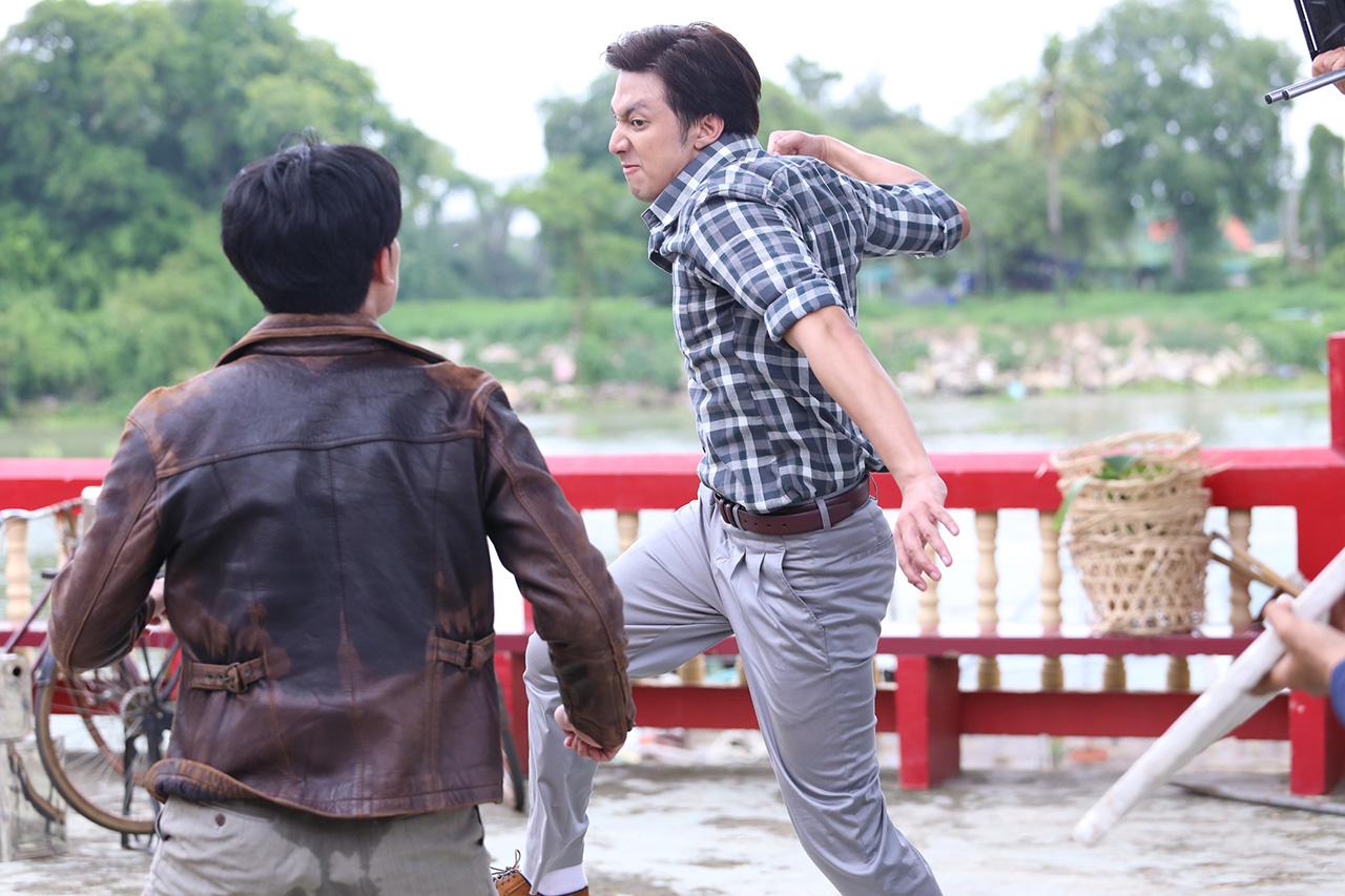 ซึ่งฉากนี้ผู้กำกับ กรัณย์ คุ้มอนุวงศ์ ยกกองไปถ่ายทำกันที่ศาลเจ้าริมน้ำแถวอยุธยา เมื่อทีมงานเซตทุกอย่างพร้อม ผู้กำกับจึงเรียกนักแสดงทุกคนมาซักซ้อมคิวทันที ฉากนี้ค่อนข้างจะชุลมุนวุ่นวาย เพราะกั้ง (กรณ์) ที่จะต้องมีคิวบู๊กับหนุ่ม ปู้ (กิตติพงษ์) หลายสเตป ไม่ต่างจากกรีนที่ต้องมีคิวฉุดกระชากลากถู ซึ่งกรีนก็เล่นจริงตั้งแต่ซ้อม เพราะจะได้กะแรงสะบัดตัวได้ถูกจังหวะ
