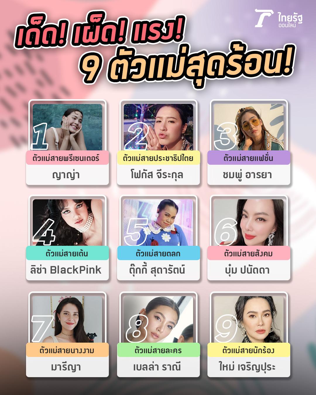 วันนี้ต้องอ่านๆ บันเทิงไทยรัฐออนไลน์ สเปเชียลคอนเทนต์ Special Content จะพาไปดูชัดๆ 9 ตัวแม่ตัวจริงเปรี้ยงๆ ใน 9 สาขาบันเทิง เด็ด! เผ็ด! แรง! ร้อนยิ่งกว่าไฟกันทุกคนเลย จริงๆ ตัวแม่มีมากกว่า 9 คนนะ แต่ถ้าไล่หมด เห็นที่จะยาวเหยียดเกินเหตุ จะเบื่อจะอ่านกันตาแตกไปก่อน