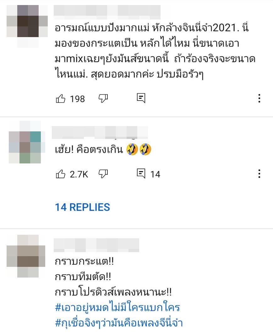 ทำเอาชาวเน็ตที่เห็นคลิปดังกล่าวต่างคอมเมนต์ชื่นชมในลีลาการแดนซ์ของเจ้าตัวที่สมเป็นขาแดนซ์ตัวแม่ เผ็ดทะลุจอชนิดเต็มสิบไม่หัก บ้างก็แซวว่าหรือว่านี่คือเวอร์ชั่น 2021 ของจริง ขนาดเอามามิกซ์เฉยๆ ยังมันขนาดนี้ ถ้าร้องจริงจะขนาดไหน ปรบมือรัวๆ ฯลฯ รวมไปถึงคนในวงการบันเทิงที่แห่เข้ามาชมความปังด้วย แต่ทั้งนี้ไม่ว่าจะเป็นเพลงเวอร์ชั่นไหน ทั้งศิลปินและทีมงานต่างก็ตั้งใจทำงานให้ผลงานออกมาดีที่สุด แสดงความคิดเห็นกันพอหอมปากหอมคอและให้กำลังใจจะดีกว่านะจ๊ะ.