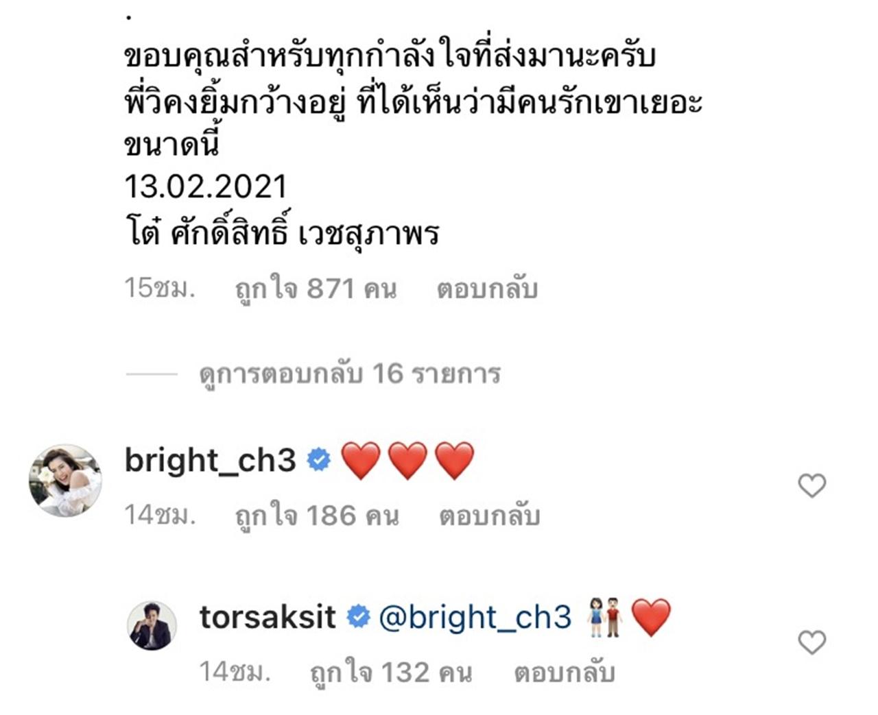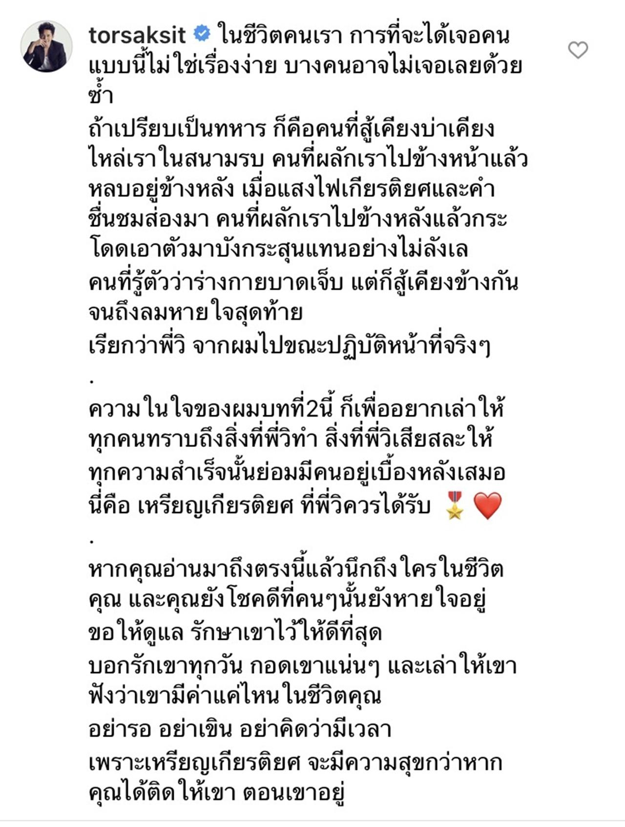 โต๋ ได้เขียนเล่าเรื่องราวความน่ารักของ พี่วิ ผ่านอินสตาแกรมตลอดการทำงานที่อยู่ด้วยกัน โดยเผยว่า