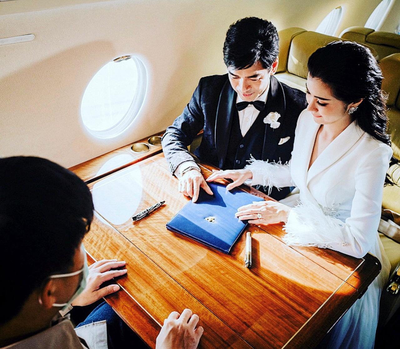 เหินฟ้าวิวาห์เหาะกันไปแล้ว เมื่อคู่รักต่างวัย “จิ๊บ รด.” วสุ แสงสิงแก้ว เจ้าของฉายา “เอลวิส เมืองไทย” ควงคู่ จ๊ะจ๋า-พริมรตา เดชอุดม ขึ้นเครื่องบินเจ็ตส่วนตัวบินขึ้นไปแต่งงานสวมแหวนและจดทะเบียนสมรสเหนือฟ้าทะเลอ่าวไทยในคอนเซ็ปท์ “เวดดิ้ง ออน เจ็ต เพลน”
