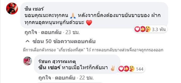 ส่วนเรื่องคนที่ออกจากค่ายก็ขอให้ทุกคนอย่าเพิ่งตัดสินว่าออกเพราะอะไร เพราะทุกคนมีเหตุผลของตนเอง ไม่สามารถไปเดาเหตุผลของแต่ละคนได้ ในกรณีของซีนคือมีปัญหาเจ็บเข่ามานานจากการเป็นเชียร์ลีดเดอร์ของมหาวิทยาลัย และมาตรวจเจอก้อนเนื้อ ตนก็รู้สึกสงสาร แต่ไม่รู้จะทำยังไง เลยบอกให้อีกฝ่ายไปรักษาให้หายก่อน ถ้าอีกฝ่ายพร้อมกลับมา ตนยินดีต้อนรับเสมอ.