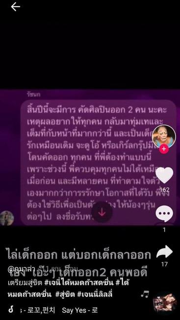 แต่ก็ไม่วายมีดราม่าแชตลับหลุดในโซเชียล โดยมีผู้ใช้ชื่อว่ารัชนก ประกาศในกลุ่มไลน์ว่าสิ้นปีจะมีการคัดศิลปินออก 2 คน เพราะอยากให้ทุกคนทุ่มเทและเต็มที่มากกว่านี้ จะเอาไว้แค่คนที่อยากอยู่เท่านั้น ทำให้เกิดความสงสัยว่าสรุปแล้วลาออกเอง หรือโดนไล่ออกกันแน่