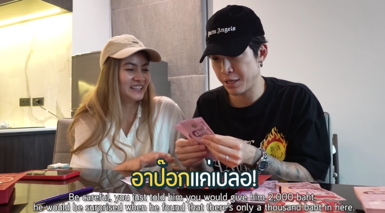 จากนั้นป๊อกก็ได้อวดอั่งเปาของ มีก้า-มีญ่า ปี 2020 ได้อั่งเปา 3 หมื่นกว่าบาท ส่วนปีนี้จะได้เท่าไร และป๊อกก็เล่าต่อว่า เงินอั่งเปาที่ได้จากพ่อในทุกๆ ปี พ่อจะเอาไปซื้อหุ้น พอโตก็ขายหุ้นเอาเงินไปลงทุนอย่างอื่นต่อ เช่นธุรกิจหรือช่องยูทูบก็คือเงินส่วนนั้น และตนก็จะทำอย่างนั้นให้กับลูกๆ เช่นกัน