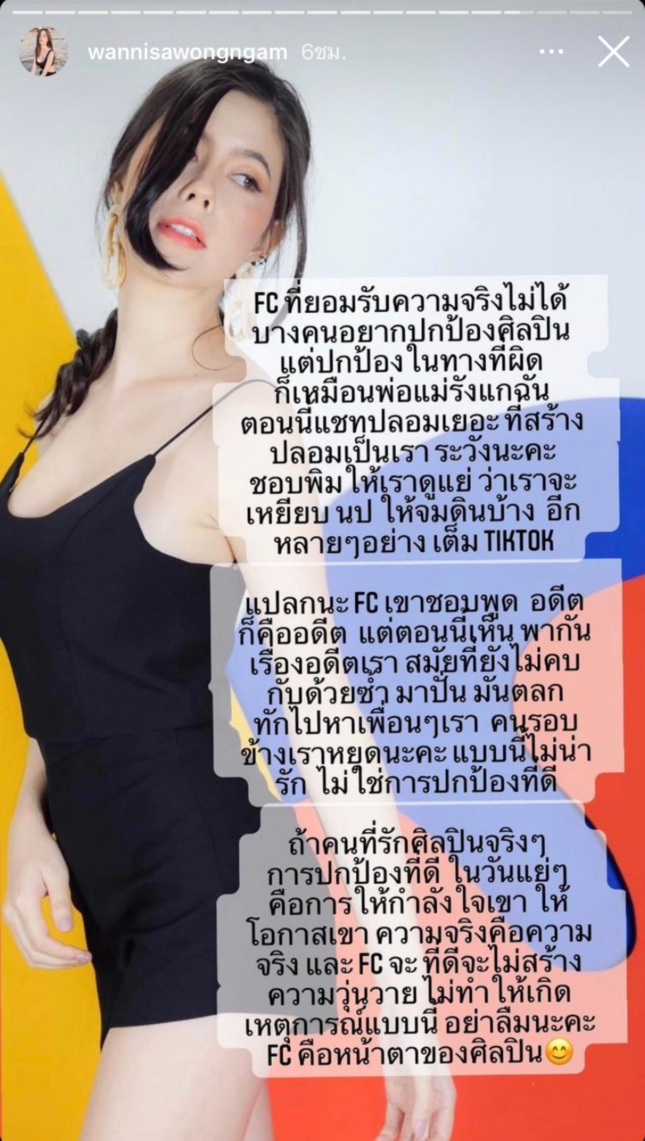 แปลกนะ FC เขาชอบพูดอดีตก็คืออดีต แต่ตอนนี้เห็นพากันเรื่องอดีตเราสมัยที่ยังไม่คบกับด้วยซ้ำ มาปั้นมันตลกทักไปหาเพื่อนๆ เราคนรอบข้างเราหยุดนะคะแบบนี้ไม่น่ารักไม่ใช่การปกป้องที่ดีถ้าคนที่รักศิลปินจริงๆ