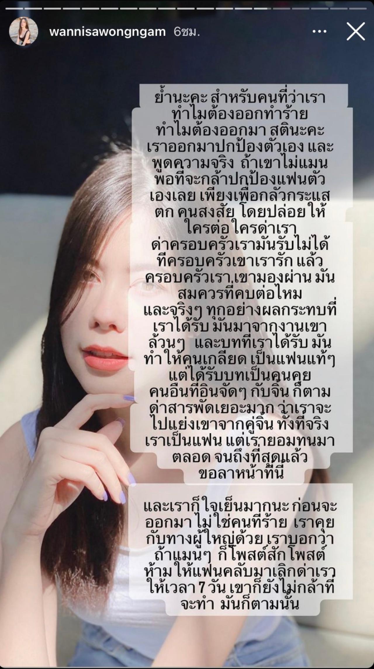ล่าสุด แอนนา วรรณนิษา ได้ออกมาโพสต์ในไอจีสตอรี่ของตัวเองแบบรัวๆ อีกครั้งว่า “ย้ำนะคะสำหรับคนที่ว่าเราทำไมต้องออกทำร้ายทำไมต้องออกมา สตินะคะเราออกมาปกป้องตัวเองและพูดความจริง