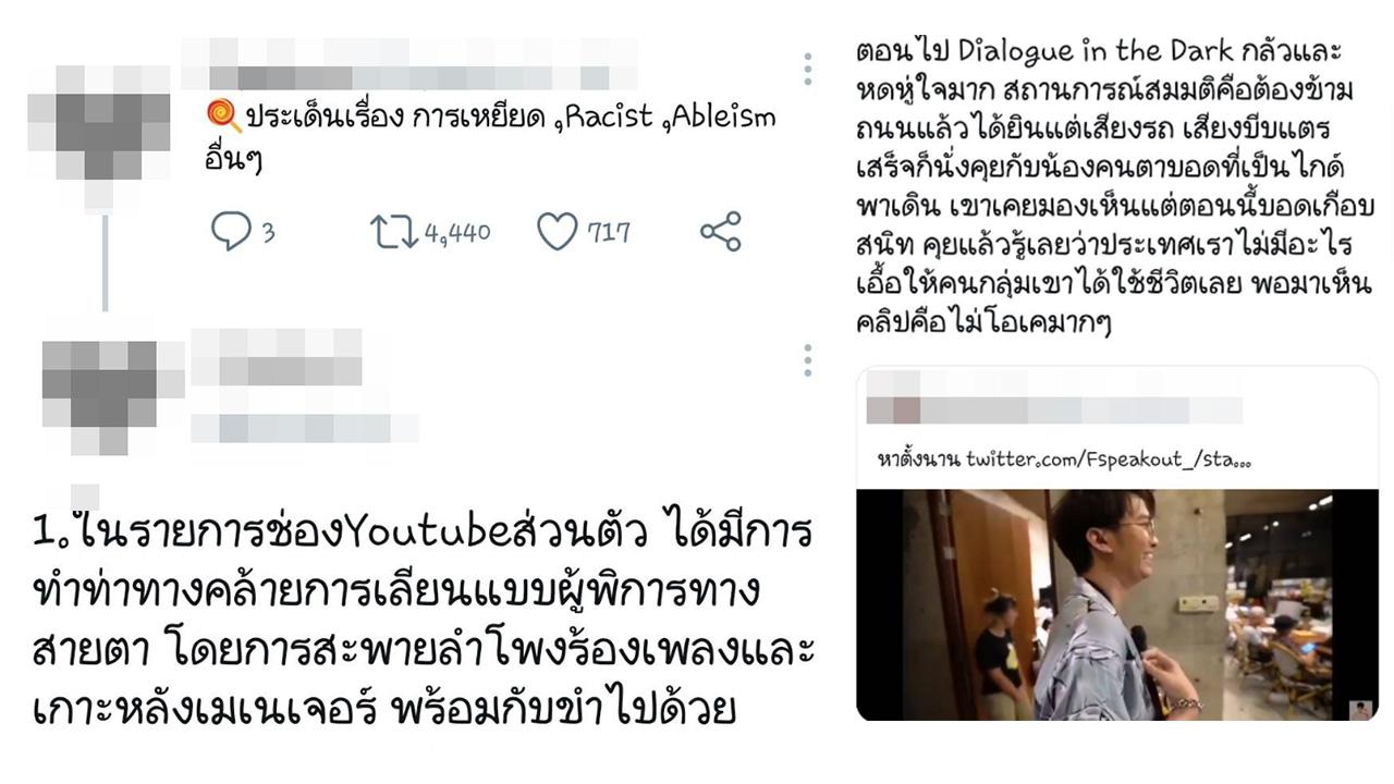 หลังจากที่คลิปดังกล่าวถูกเผยแพร่ออกไป ก็มีผู้ใช้ทวิตเตอร์ที่รู้สึกไม่ดีเมื่อได้เห็นคลิปดังกล่าว จึงออกมาวิจารณ์ถึงการกระทำดังกล่าวว่าเป็นการกระทำที่ไม่เหมาะสม และมองว่าเป็นการเหยียดและล้อเลียนผู้พิการทางสายตาอีกด้วย
