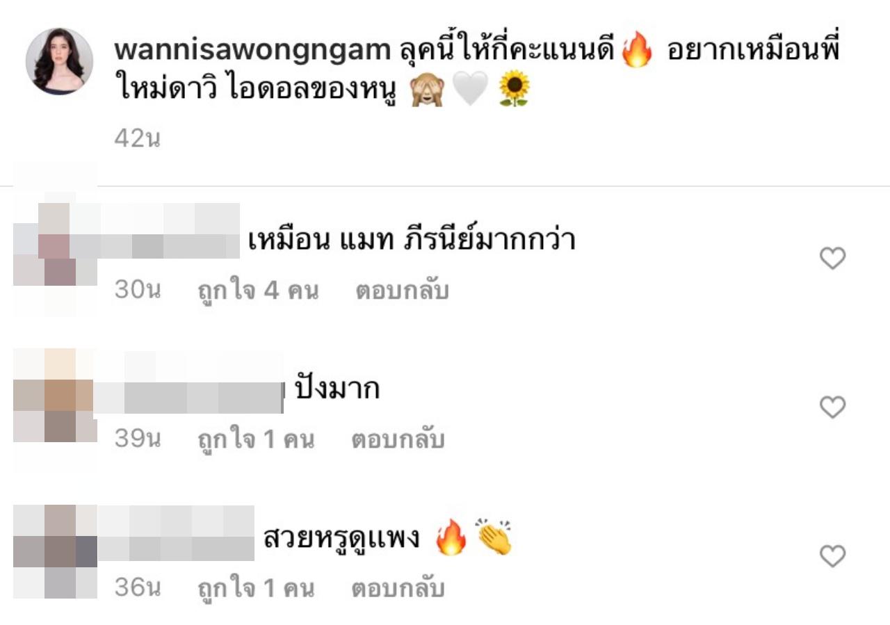 ซึ่งหลังจากที่ แอนนา วรรณนิษา โพสต์คลิปสั้นๆ ระหว่างที่ถ่ายแบบพร้อมแคปชั่นดังกล่าวไป ก็มีแฟนๆ เข้ามาคอมเมนต์ชมแอนนาว่า เหมือน แมท ภีรนีย์ สวยปังมากๆ แต่ก็มีชาวเน็ตบางคนไม่พอใจที่สาวแอนนาอยากเหมือนใหม่ ดาวิกา จึงเข้ามาคอมเมนต์ว่า “อย่าไปเทียบกับใหม่ดาวิของฉัน” อีกด้วย แต่ล่าสุดคอมเมนต์ดังกล่าวได้ถูกลบหายไปเรียบร้อยแล้ว