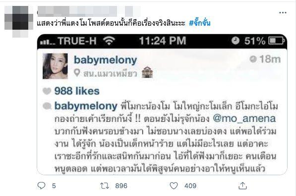 ล่าสุด ชาวเน็ตขุดโพสต์ที่นักแสดงสาวชื่อผลไม้ แตงโม นิดา พัชรวีระพงษ์ เคยโพสต์เกี่ยวกับอดีต ผจก.ของนางเอกดังไว้ในไอจีเมื่อหลายปีที่แล้ว โดยมีข้อความว่า “พี่โมกะน้องโม โมใหญ่กะโมเล็ก อีโมกะไอ่โม กองถ่ายเค้าเรียกกันงี้!! ตอนยังไม่รู้จักน้อง @mo_amena บวกกับฟังคนรอบข้างมา ไม่ชอบนางเลยบ่องตง แต่พอได้ร่วมงาน ได้รู้จัก น้องเป็นเด็กหน้าร้าย แต่ไม่มีอะไรเลย