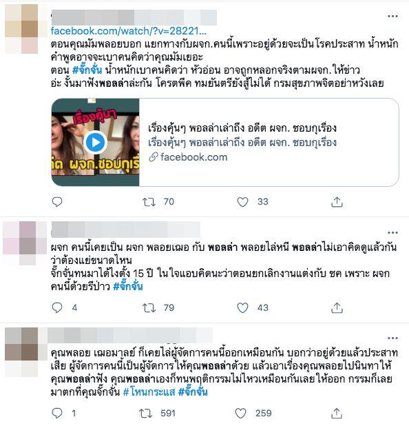 นอกจากนี้ ในทวิตเตอร์ยังพูดถึงกรณีที่อดีตผู้จัดการส่วนตัวของจั๊กจั่น เคยเป็นผู้จัดการส่วนตัวของ 2 นางเอกสาว พลอย เฌอมาลย์ บุญยศักดิ์ และ พอลล่า เทเลอร์ โดยมีการพูดถึงข่าวของพลอยที่ให้สัมภาษณ์เรื่องอดีตผู้จัดการ รวมไปถึงคลิปที่พอลล่าเคยพูดถึงประสบการณ์ที่เคยมีผู้จัดการด้วย.
