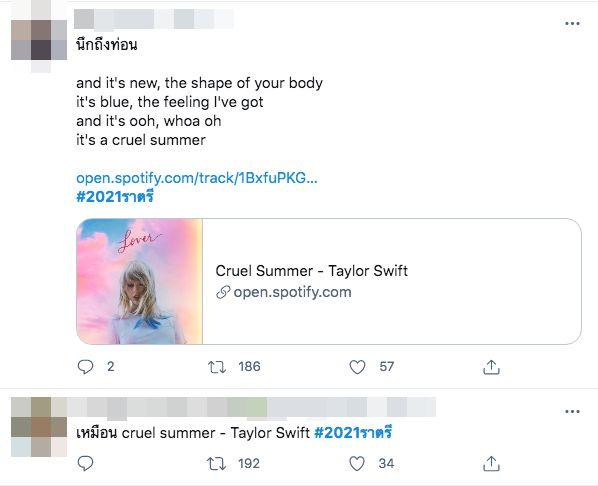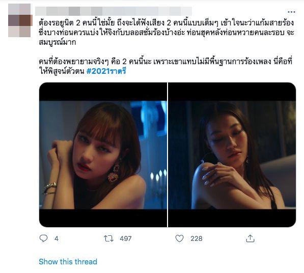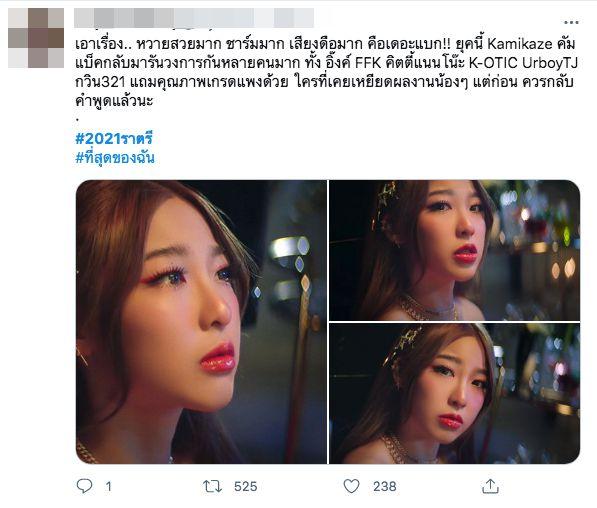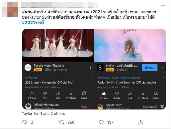 ซึ่งในทวิตเตอร์ได้มีการติดแฮชแท็ก #2021ราตรี เพื่อพูดถึงเพลงดังกล่าว จนติดเทรนด์ทวิตเตอร์อันดับ 1 อีกครั้ง โดยมีทั้งคนที่ชื่นชมว่าเพลงเพราะ ดนตรีดี มิวสิกวิดีโอสวยงาม ศิลปินสวยปัง ทุกอย่างดีกว่าเพลงที่แล้ว แต่ก็มีหลายคนที่ฟังแล้วบอกว่าเพลงดังกล่าวมีบางส่วนที่คล้ายกับเพลง Cruel Summer ศิลปิน เทย์เลอร์ สวิฟต์ รวมถึงเพลง With You ศิลปิน มารายห์ แครี่ จนเกิดกระแสวิพากษ์วิจารณ์ตามมาอีกระลอก