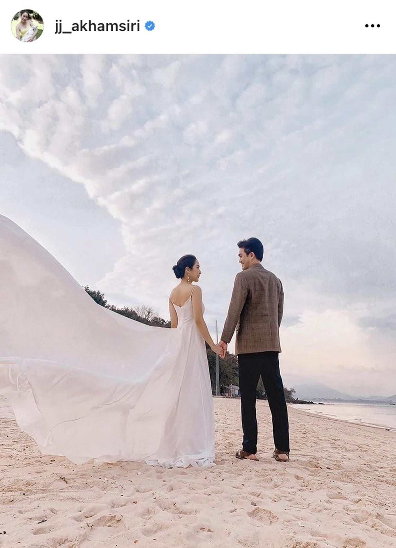 ล่าสุด จั๊กจั่น ก็ได้โพสต์ภาพที่ถ่ายพรีเวดดิ้งกับว่าที่สามี ยืนจูงมือกันริมชายหาด ในบรรยากาศสุดโรแมนติก พร้อมกับเขียนแคปชั่นเป็นอีโมจิรูปหัวใจหลายดวง และใส่แฮชแท็กว่า "#jjkstories"