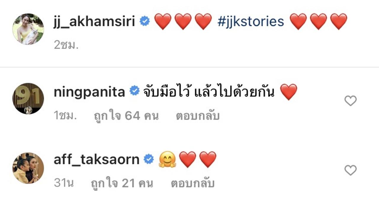 ซึ่งหลายคนที่ติดตาม จั๊กจั่น และให้กำลังใจมาโดยตลอด ต่างก็เข้ามาส่งหัวใจกันรัวๆ พร้อมกับเขียนให้กำลังใจว่าที่คู่บ่าวสาว และแสดงความยินดีพร้อมกับอวยพรขอให้ชีวิตคู่มีแต่ความสุข ขอให้เป็นความรักที่งดงาม และอยากเห็น จั๊กจั่น มีความสุขสักที