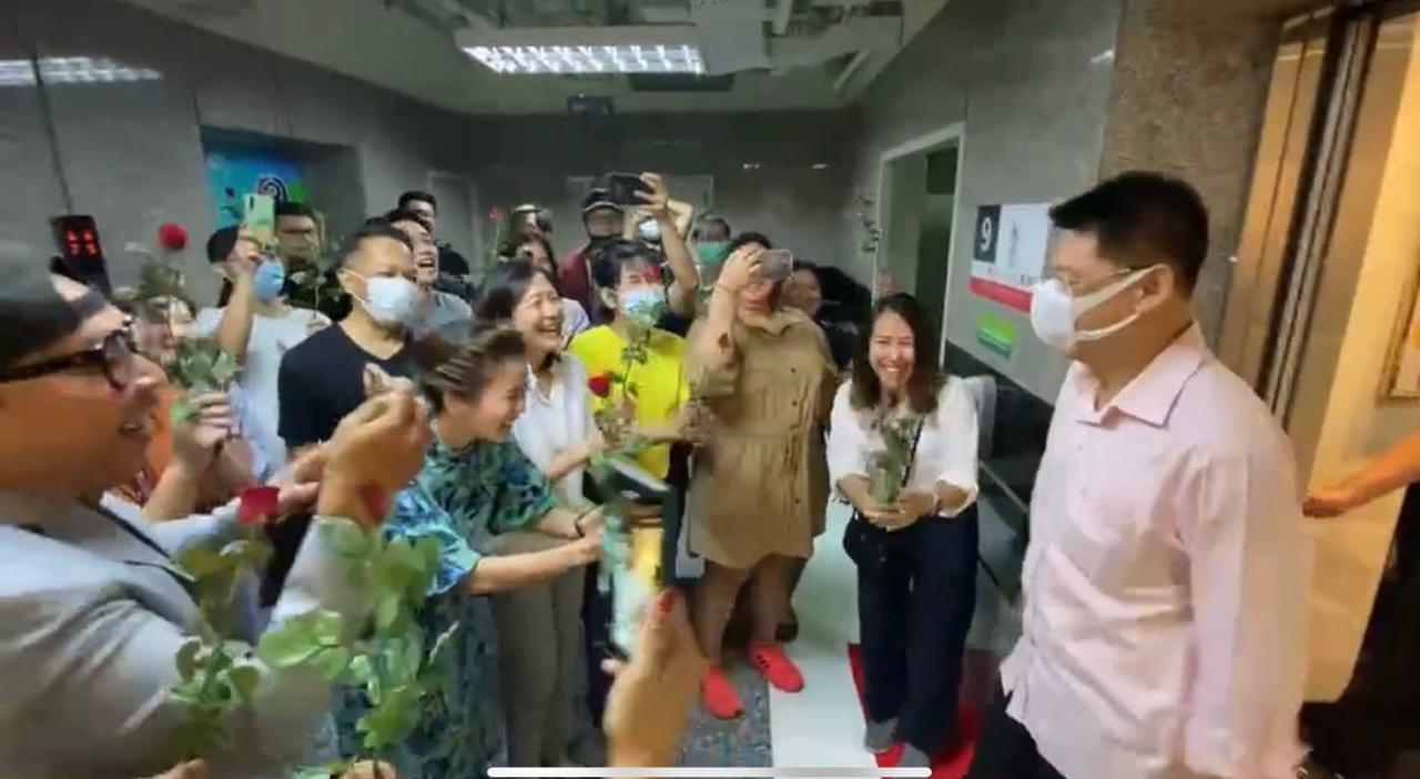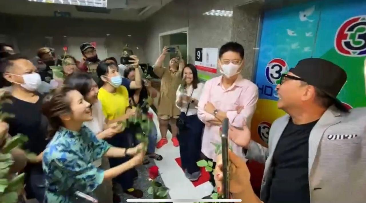 ซึ่งในคลิปดังกล่าว ทีมผู้ประกาศและพนักงาน มายืนรอรับ สรยุทธ ที่หน้าลิฟต์ อย่างใจจดใจจ่อและเมื่อลิฟต์เปิด ทุกคนก็ร้องเพลงกุหลาบแดง และนำดอกกุหลาบสีแดงมามอบให้กับ สรยุทธ ทำเอาเจ้าตัวยิ้มเขินไม่น้อย ซึ่งมี ไบรท์ พิชญทัฬห์, ไก่ ภาษิต, เปิ้ล นาคร, หมวย อริสรา, หนุ่ย เอกราช มาต้อนรับ