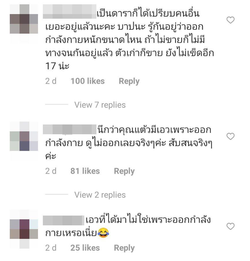 แต่หลังจากนั้นก็เกิดดราม่าซะแล้ว เพราะมีชาวเน็ตบางส่วนที่ไม่เห็นด้วยกับการโปรโมตดังกล่าว บอกว่าเป็นดาราก็ได้เปรียบคนอื่นเยอะอยู่แล้ว แถมออกกำลังกายเยอะ ตัวเก่าก็ขาย ยังไม่เข็ดอีกเหรอ และมีบางคนโพสต์ถามว่าเอวที่ได้มาไม่ใช่เพราะการออกกำลังกายอย่างหนักเหรอ แถมยังทานอาหารคลีนอยู่แล้ว ยังต้องทานตัวช่วยอีกเหรอ แต่ก็มีแฟนๆ ที่มาให้กำลังใจและแสดงความยินดีเป็นจำนวนมาก พร้อมทั้งบอกว่าเก่งมาก สวยมาก ฯลฯ