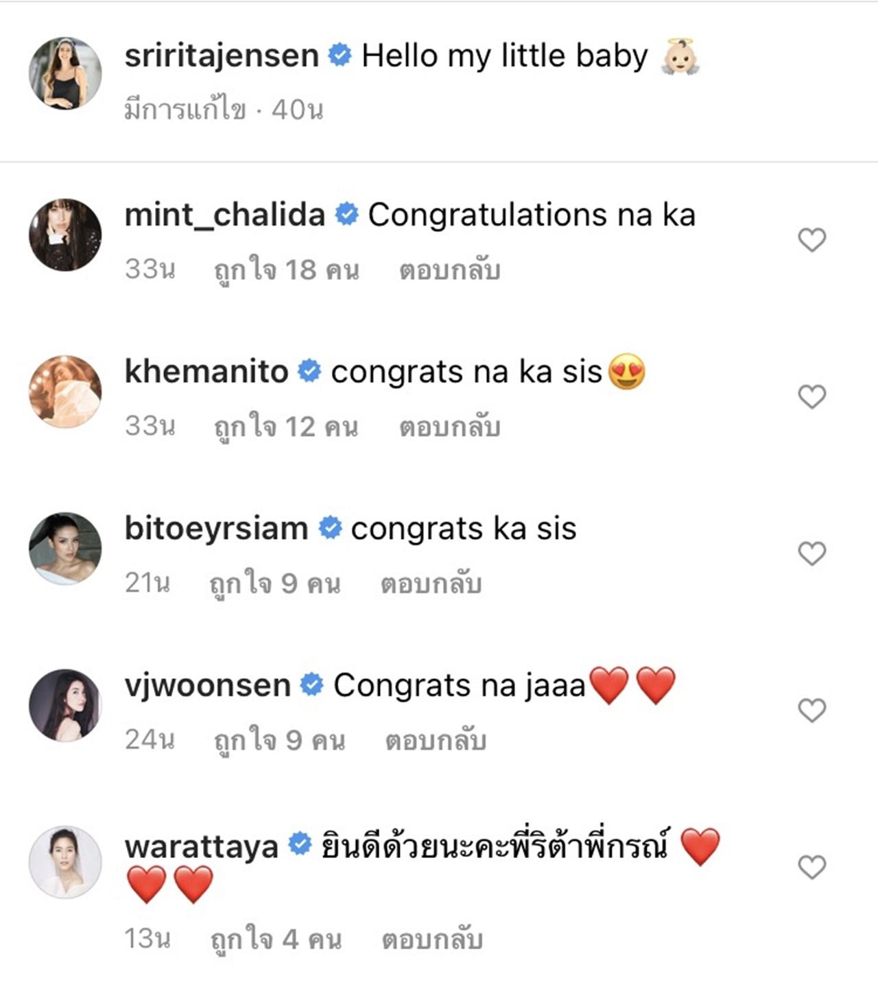จากนั้นในเช้าวันนี้ ริต้า ก็ได้โพสต์ภาพเท้าน้อยๆ พร้อมโอบล้อมด้วยมืออันอบอุ่นของพ่อแม่ และเขียนว่า "Hello my little baby" ท่ามกลางเพื่อนๆ ในวงการบันเทิง เพื่อนสนิท และแฟนๆ ที่ติดตามเข้ามาแสดงความยินดีเป็นจำนวนมาก.