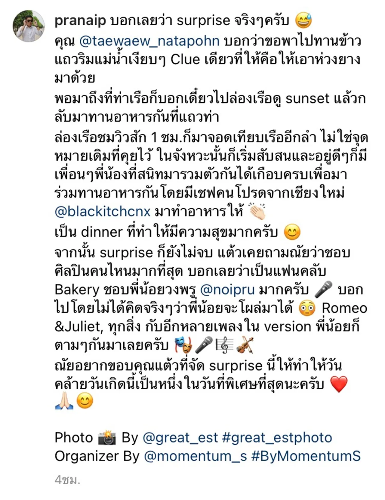 ณัยอยากขอบคุณแต้วที่จัด surprise นี้ให้ทำให้วันคล้ายวันเกิดนี้เป็นหนึ่งในวันที่พิเศษที่สุดนะครับ"