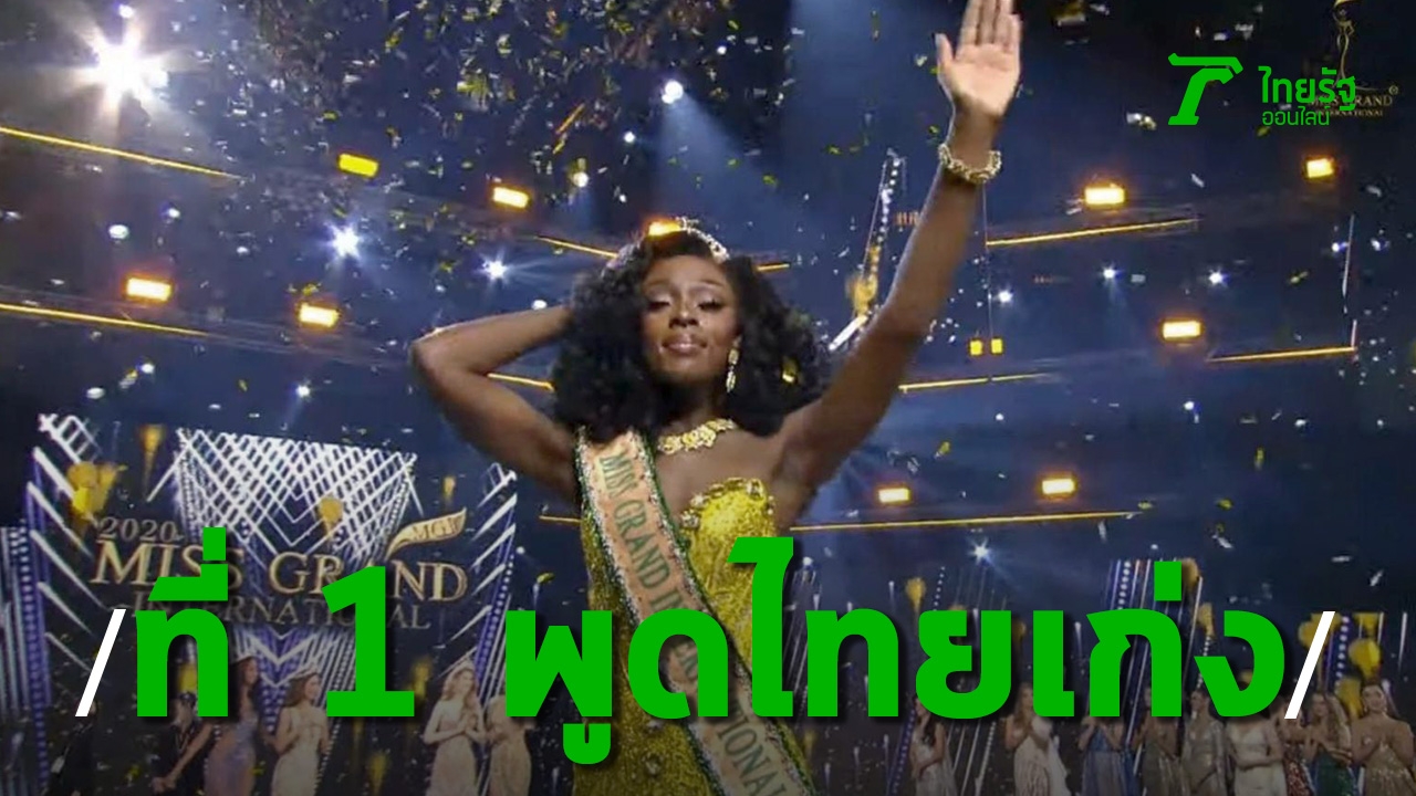 มิสแกรนด์ สหรัฐอเมริกา Miss Abena Appiah อัลเบน่า แอพเพีย พูดภาษาอังกฤษสั้นๆ คมๆ ตบท้ายด้วยภาษาไทยชัดๆ ไปว่า "พวกเราต้องการสันติภาพ"