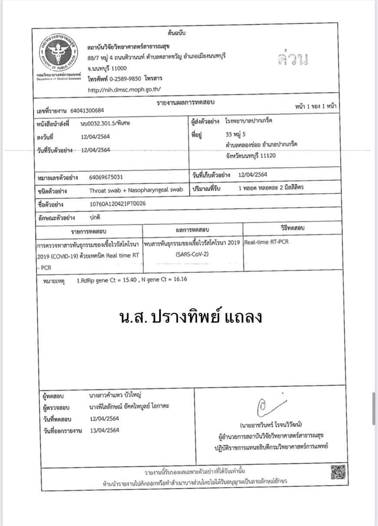 8 เมษา ไปอัดรายการที่เวิร์คพอยท์ รังสิต ได้เข้าเจาะเลือดก่อนเข้าทำงานไม่พบเชื้อ covid
