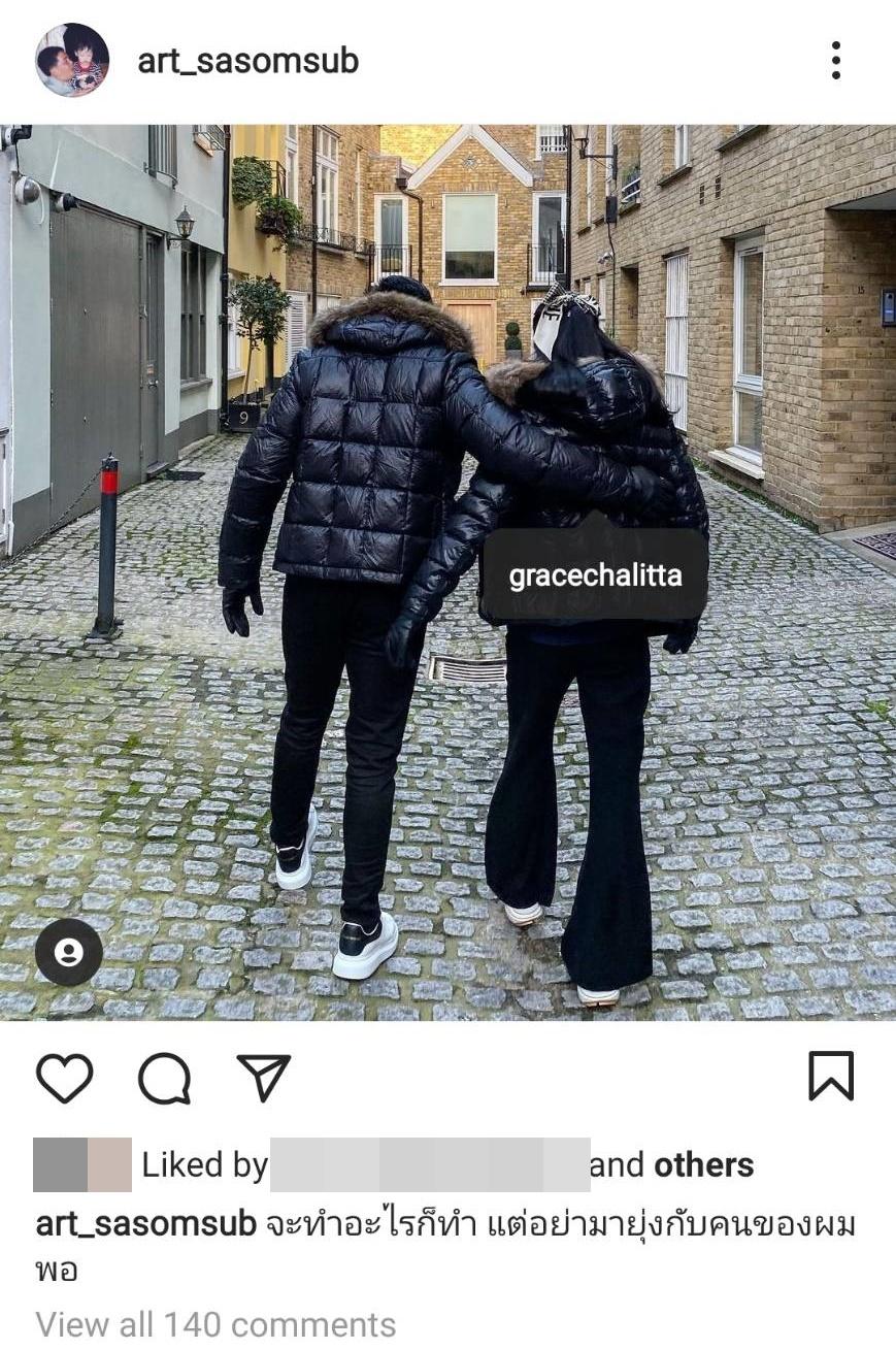 งานนี้นอกจากเกรซจะได้รับกำลังใจจากเพื่อนๆ และแฟนๆ แล้ว ด้านไฮโซหนุ่ม อาร์ต อิทธิโชติ สะสมทรัพย์ แฟนหนุ่มคนใหม่ของเกรซ ก็ได้ปกป้องแฟนสาวด้วยการโพสต์ภาพคู่มาแล้ว พร้อมทั้งบอกว่า "จะทำอะไรก็ทำ แต่อย่ามายุ่งกับคนของผมพอ" และล่าสุดไฮโซหนุ่มก็ทนไม่ไหวกับเรื่องนี้เช่นกัน โพสต์ภาพข้อความลงไอจีสตอรี่แบบรัวๆ มีเนื้อหาดังนี้