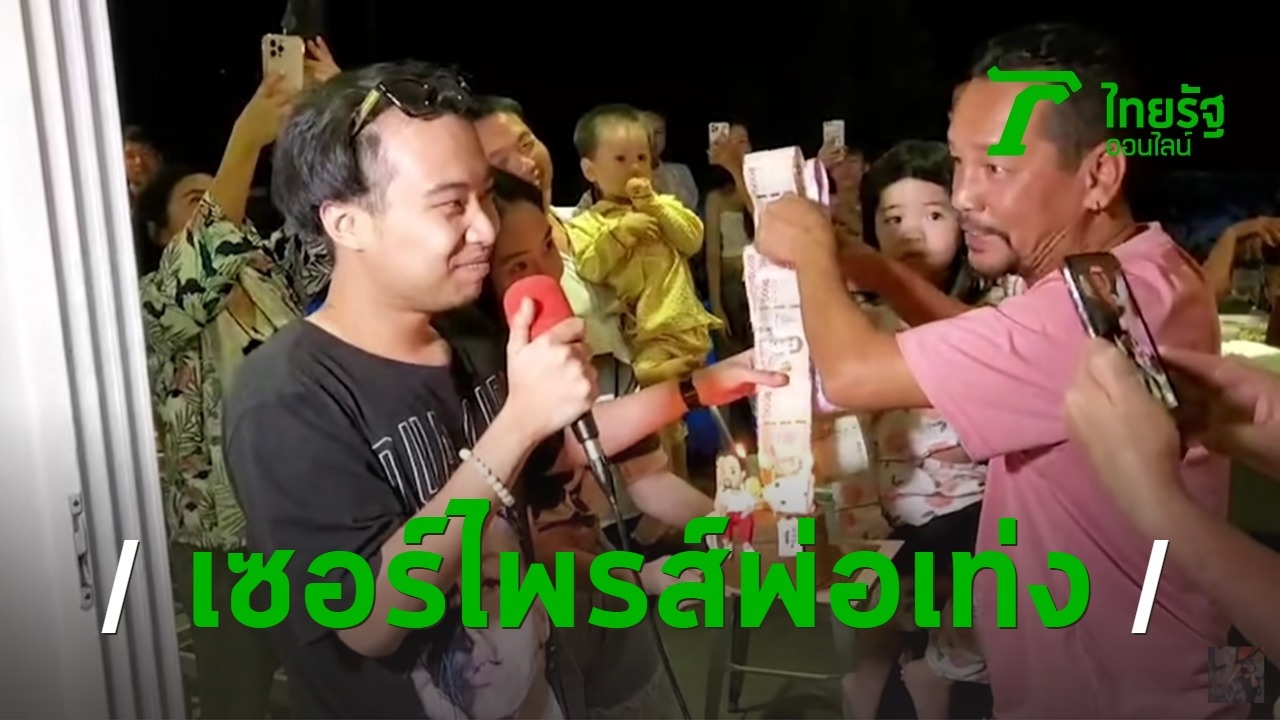 เมื่อถึงเวลา โหงวเฮ้ง ลูกชาย พร้อมด้วย น้องพลอย ลูกสาวก็ได้ยกเค้กมาให้ พ่อเท่ง เป่า จากนั้นก็ให้ดึงเงินออกมาจากเค้กก้อนนั้น ทำเอาคนเป็นพ่อตื่นเต้นและดีใจมาก