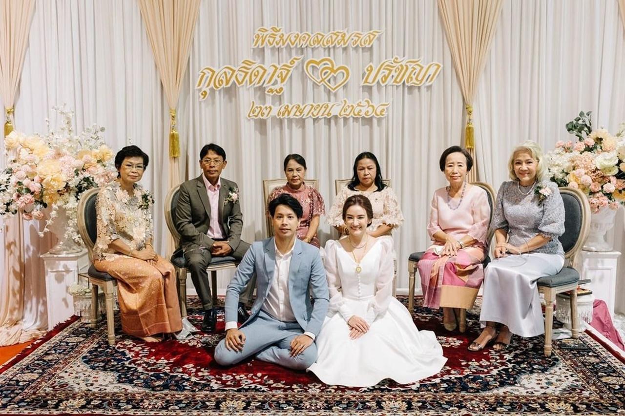 "วันที่23/4/64 จิ๊บพี่ตั้มและครอบครัวได้จัดงานแต่งงานเล็กๆ ขึ้นเป็นการภายใน เนื่องจากสถานการณ์โควิดที่เกิดระลอกใหม่ขึ้น จึงไม่ได้เรียนเชิญผู้ใหญ่หลายๆ ท่าน