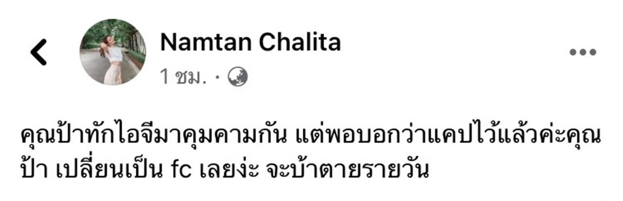 และหลังจากที่เป็นข่าว ก็ได้มีชาวเน็ตส่งข้อความไปหา น้ำตาล ผ่านทางอินสตาแกรม เพื่อถามว่า ทำไมต้องออกมาด่ารัฐบาล จะให้เขามาดูแลทุกคนก็ไม่ไหว หัดโทษตัวเองบ้าง ซึ่งด้าน น้ำตาล ก็ได้แคปข้อความนี้ พร้อมกับโพสต์ถามว่า "ต้องโทษตัวเองเรื่องอะไร" ก่อนที่จะโพสต์ต่อว่า "คุณป้าทักไอจีมาคุกคามกัน แต่พอบอกว่าแคปไว้แล้วค่ะคุณป้า เปลี่ยนเป็น fc เลยง่ะ จะบ้าตายรายวัน".