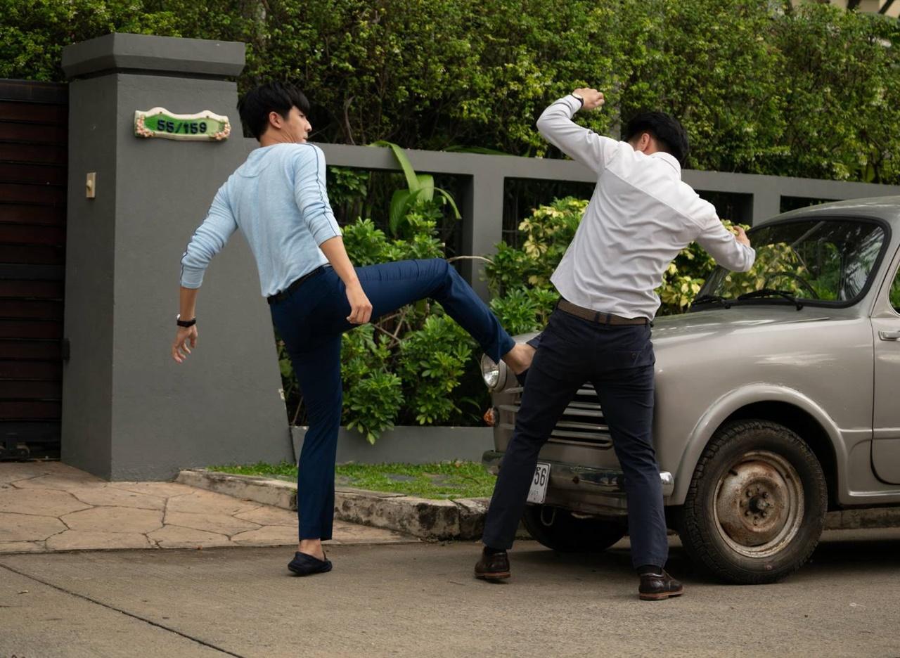 ผู้กำกับฯ เรียก 2 หนุ่มมาซ้อมคิวบู๊ก่อน ส่วน “แม็กกี้” ท่องบทรอสวยๆ แล้วก็เริ่มถ่ายจริง เปิดฉากที่ “โอ๊ต” มารับ “แม็กกี้” ไปทานข้าว ส่วน “บูม” ก็ยืนเก๊กหล่ออยู่หน้าบ้าน เรื่องส่งสายตาหน้ากวนไว้ใจ “บูม” แล้วก็ปะทะคารม จุดชนวนให้ “โอ๊ต” ระเบิดอารมณ์ เปิดฉาก ซัด “บูม” ก่อน ฝั่ง “บูม” ก็ซัดกลับไม่โกง ผู้กำกับฯปล่อยให้ทั้งคู่โชว์พลังกันพักหนึ่งก็ให้คิว “กอง” (รุ้งลาวัลย์ โทนะหงษา) พาคุณผู้หญิงออกมาห้ามศึกรัก แล้วไล่หนุ่มๆ กลับไป