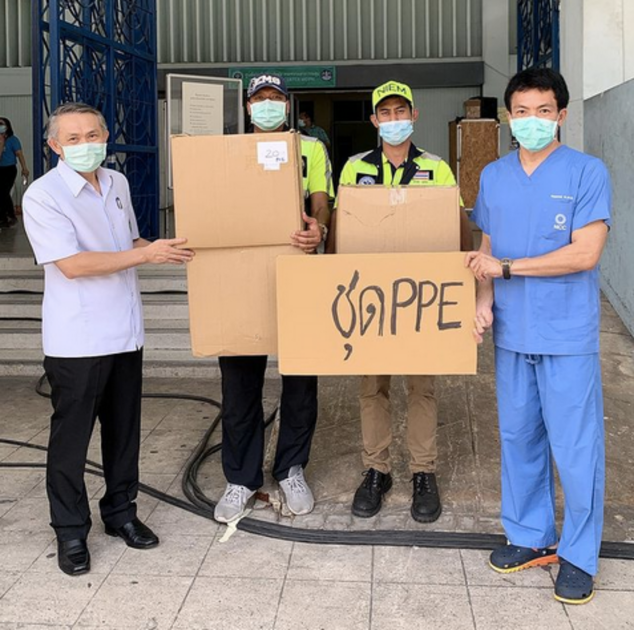 หมอสองยังได้โพสต์ไอจี dr_nopparat บอกไปแล้ว ผมเอาชุด PPE มาบริจาคที่ ศูนย์แรกรับและส่งต่อผู้ป่วย กระทรวงสาธารณสุข ที่อาคารนิมิบุตร สนามกีฬาแห่งชาติ ท่านนพ.ธงชัย รองปลัดกระทรวงสาธารณสุข ออกมารับมอบด้วยตัวเองเลย ศูนย์กำลังจะเริ่มเปิดรับผู้ป่วยเย็นนี้ เป็นวันแรกครับ โทร. 1668-1669 #เราจะผ่านวิกฤตินี้ไปด้วยกัน