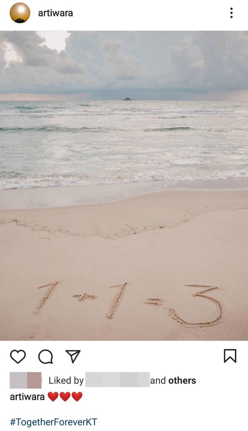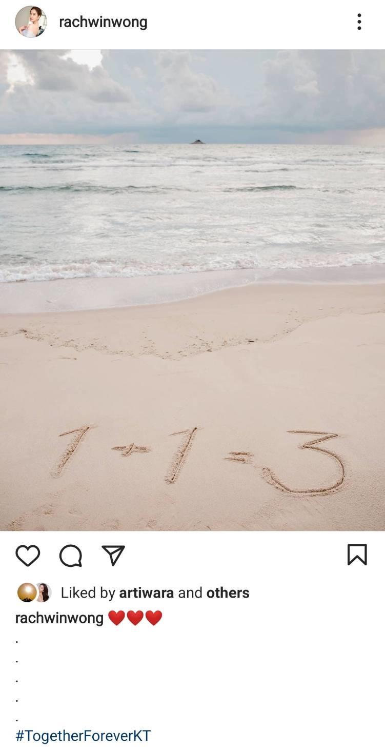 ล่าสุดดูเหมือนว่าจะมีข่าวดีแล้ว เมื่อ ตูน-ก้อย พร้อมใจโพสต์ภาพหาดทรายที่เขียนข้อความว่า 1+1 = 3 พร้อมทั้งเขียนแคปชั่นเป็นอีโมจิหัวใจ 3 ดวง และติดแฮชแท็ก #TogetherForeverKT โดยมีแฟนๆ เข้ามาคอมเมนต์แสดงความยินดีเป็นจำนวนมาก ซึ่งหลายคนคาดว่าน่าจะมีข่าวดีเรื่องทายาท