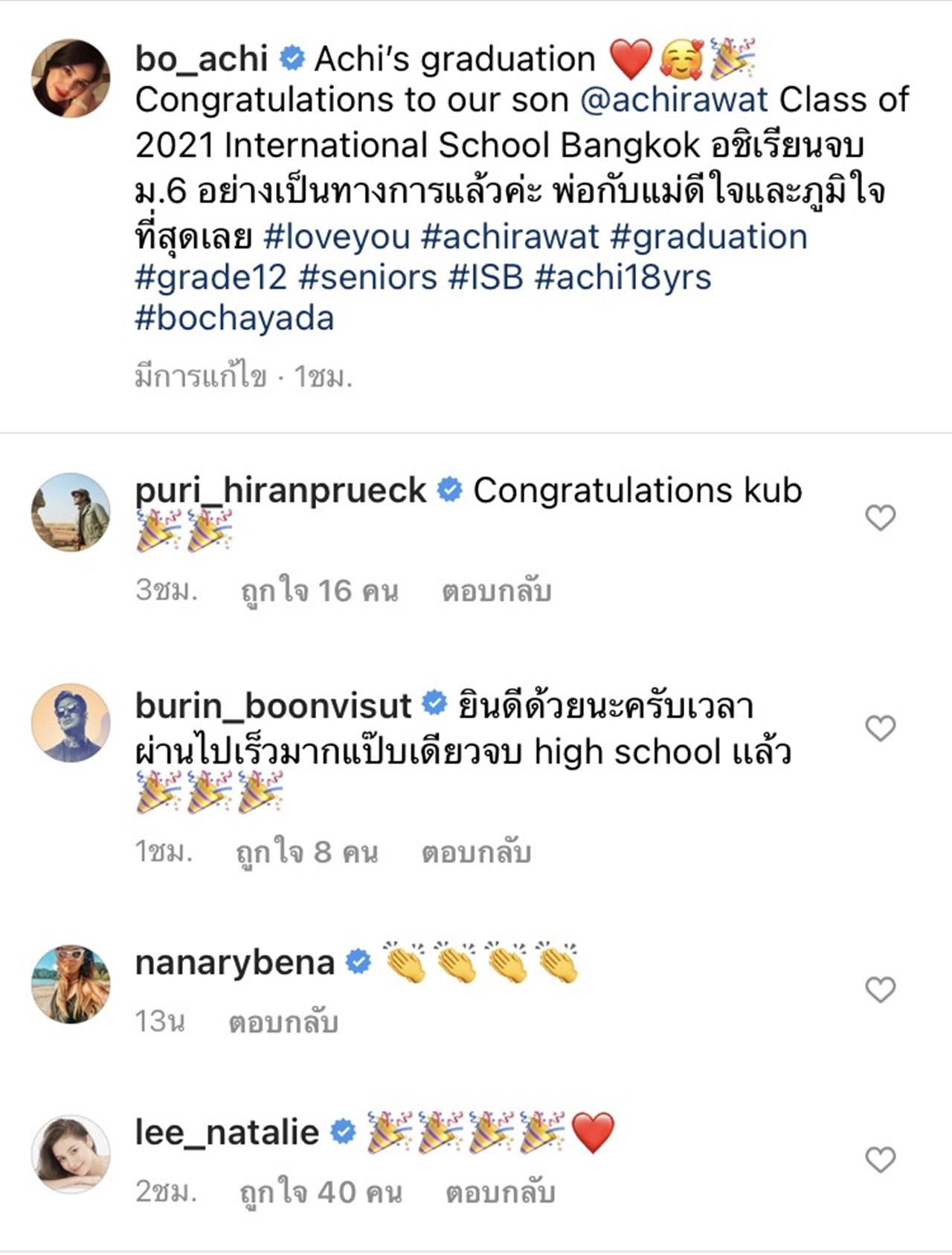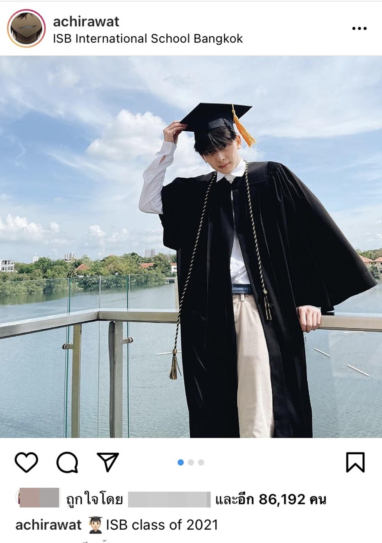 "Achi’s graduation Congratulations to our son @achirawat Class of 2021 International School Bangkok อชิเรียนจบ ม.6 อย่างเป็นทางการแล้วค่ะ พ่อกับแม่ดีใจและภูมิใจที่สุดเลย #loveyou #achirawat #graduation #grade12 #seniors #ISB #achi18yrs #bochayada"