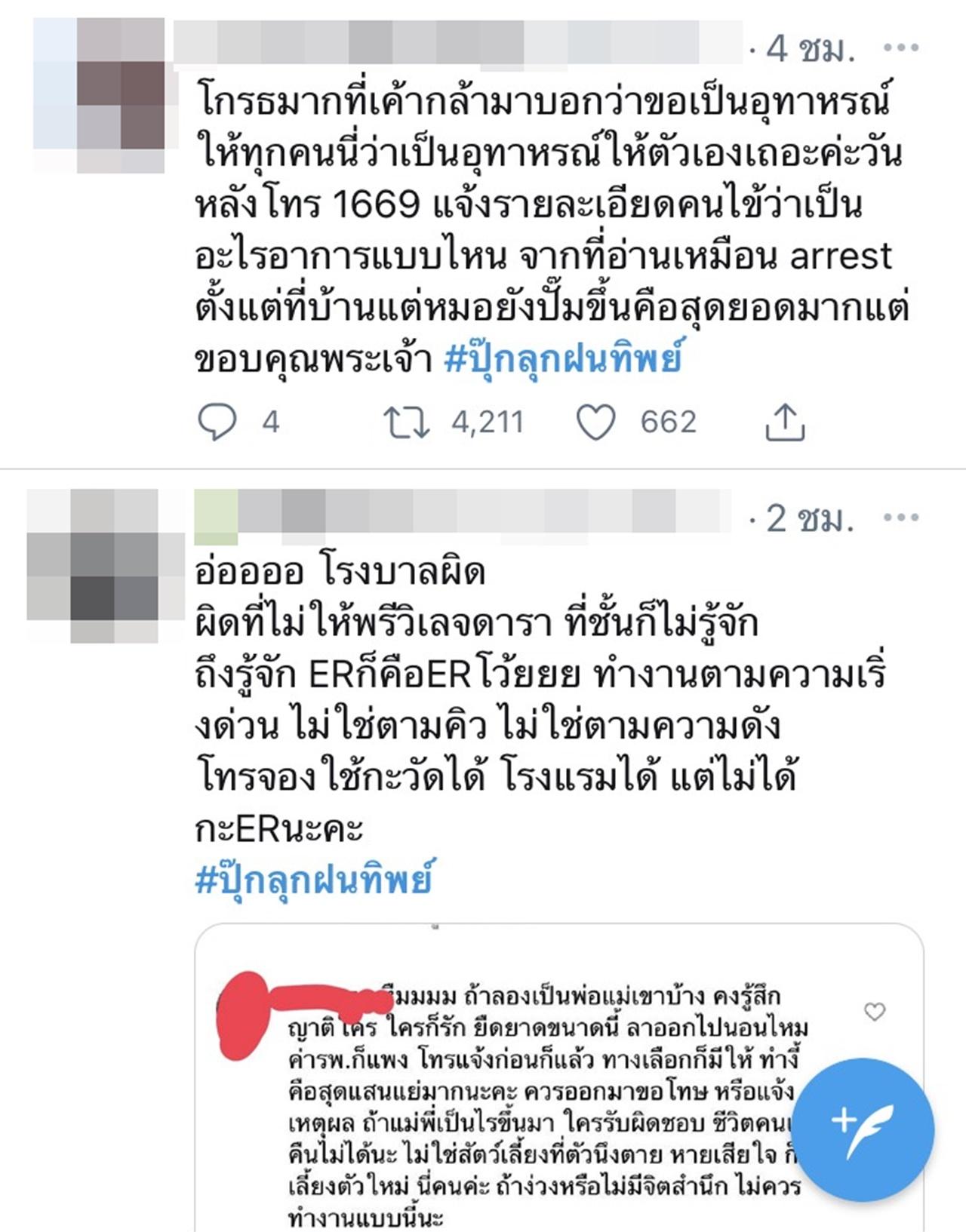 - โกรธมากที่เค้ากล้ามาบอกว่าขอเป็นอุทาหรณ์ให้ทุกคนนี่ว่าเป็นอุทาหรณ์ให้ตัวเองเถอะค่ะวันหลังโทร 1669 แจ้งรายละเอียดคนไข้ว่าเป็นอะไรอาการแบบไหน จากที่อ่านเหมือน arrest ตั้งแต่ที่บ้านแต่หมอยังปั๊มขึ้นคือสุดยอดมากแต่ขอบคุณพระเจ้า #ปุ๊กลุกฝนทิพย์