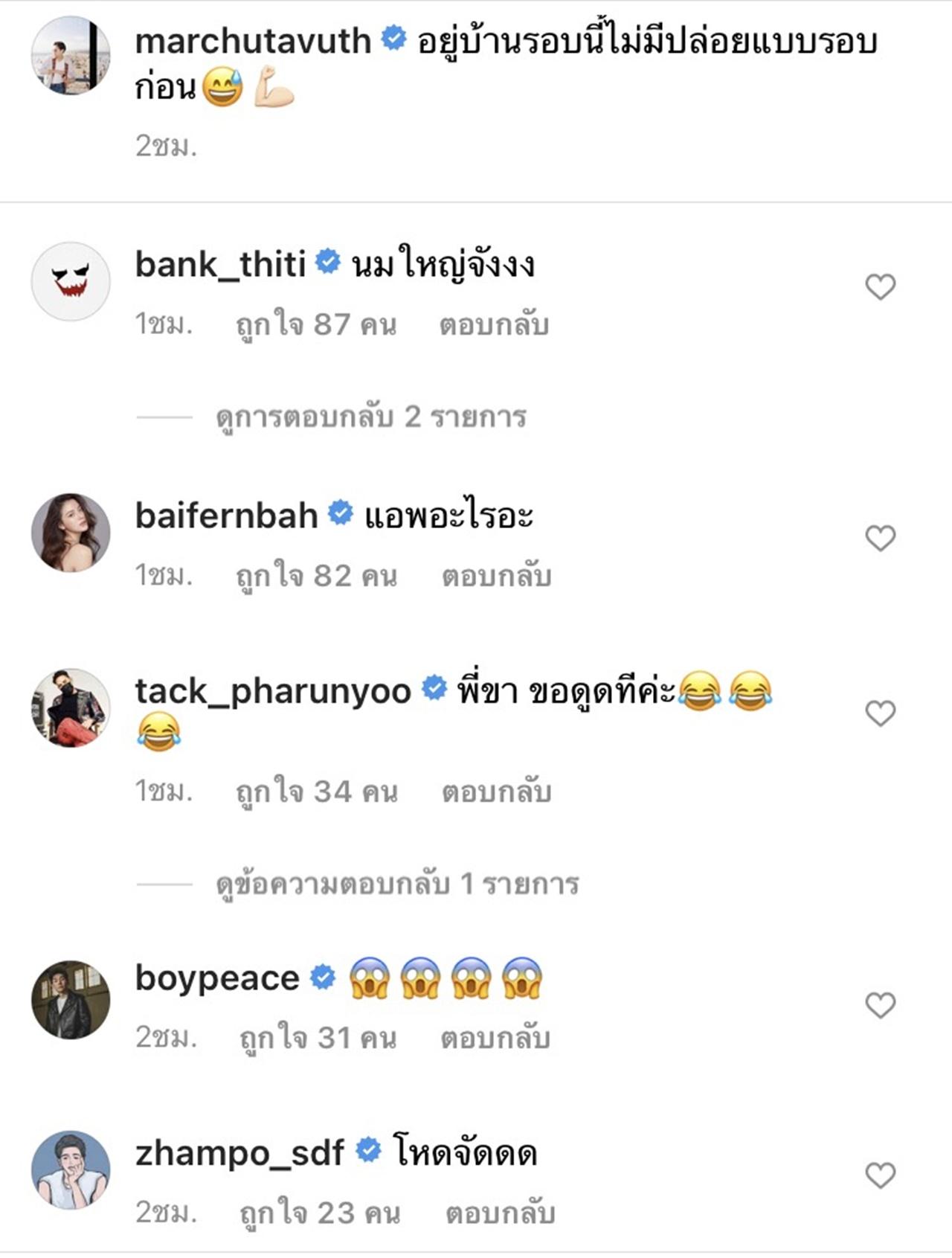 งานนี้ทำเอาเพื่อนและแฟนๆ ที่ติดตามต่างร้องว้าวในความเปลี่ยนไปของ มาร์ช กันเป็นแถว อีกทั้งยังมีแซวอีกว่า ใช้แอปอะไรแต่งรูป.