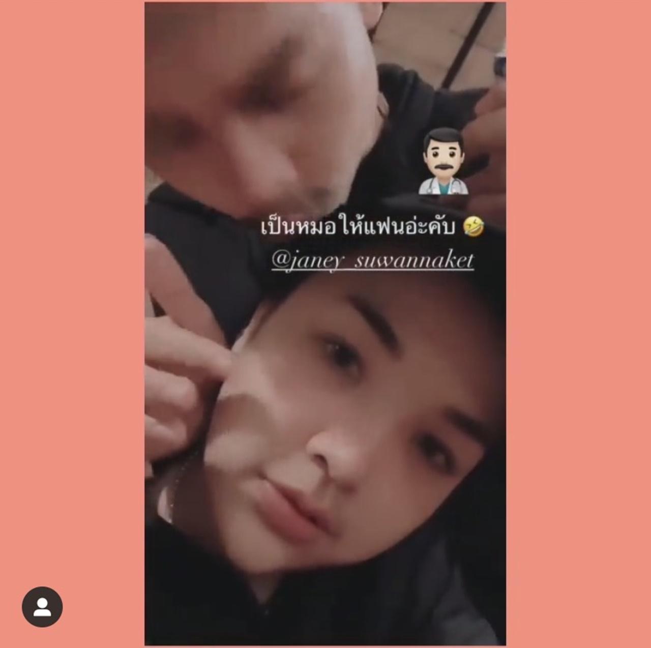 และอีกคลิปที่ฝ่ายชายโพสต์ลงไอจีสตอรี่เช่นเดียวกัน เป็นคลิปที่นักร้องสาวกำลังนอนหนุนตักและ ยิว ฉัตรมงคล กำลังทาครีมให้แฟนสาวที่หน้า พร้อมกับแคปชั่นว่า "เป็นหมอให้แฟนอ่ะคับ"