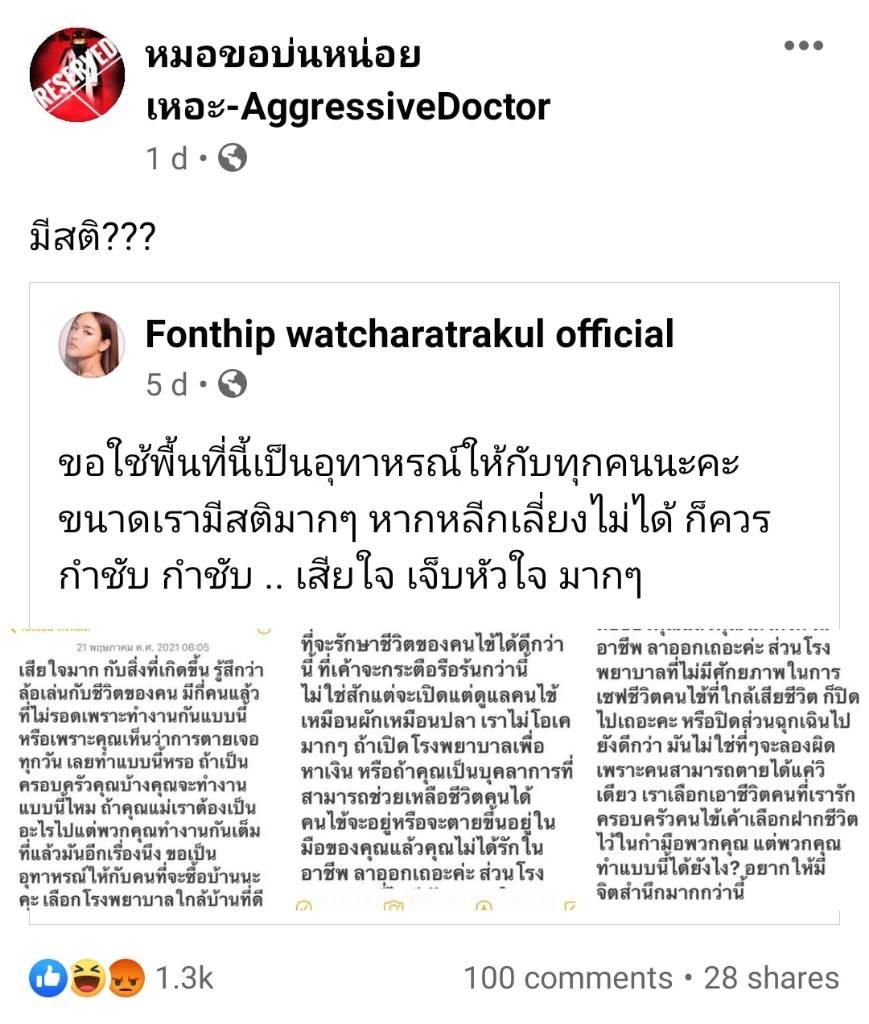 นอกจากนี้เพจดังกล่าวก็ได้แชร์ภาพข้อความดราม่าเรื่อง รพ.แรกที่รักษาคุณแม่จากแฟนเพจของปุ๊กลุก และแสดงความคิดเห็นว่า “มีสติ???” โดยมีชาวเน็ตเข้ามาแสดงความคิดเห็นเป็นจำนวนมาก.