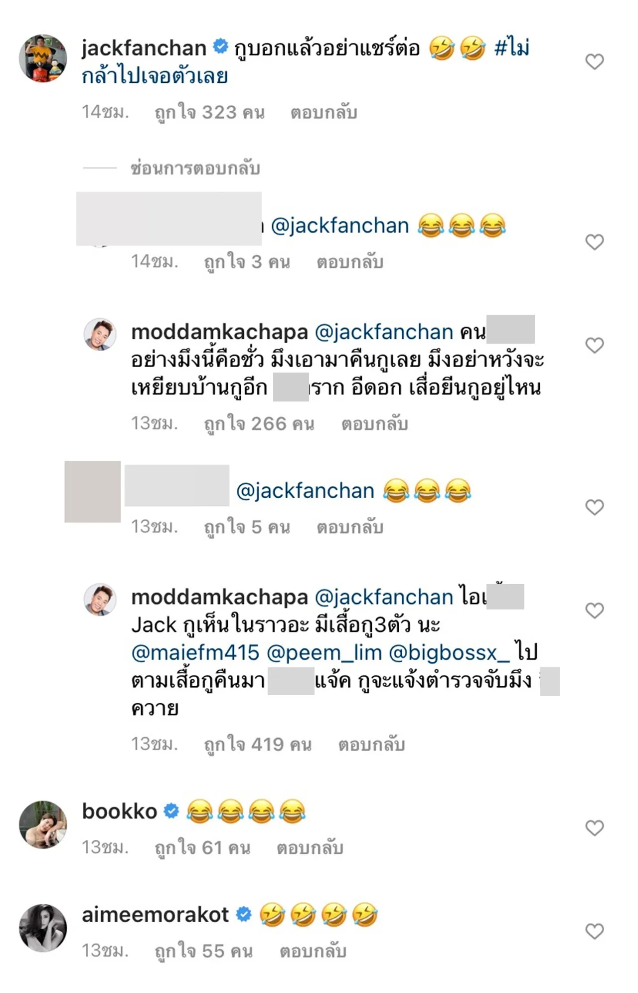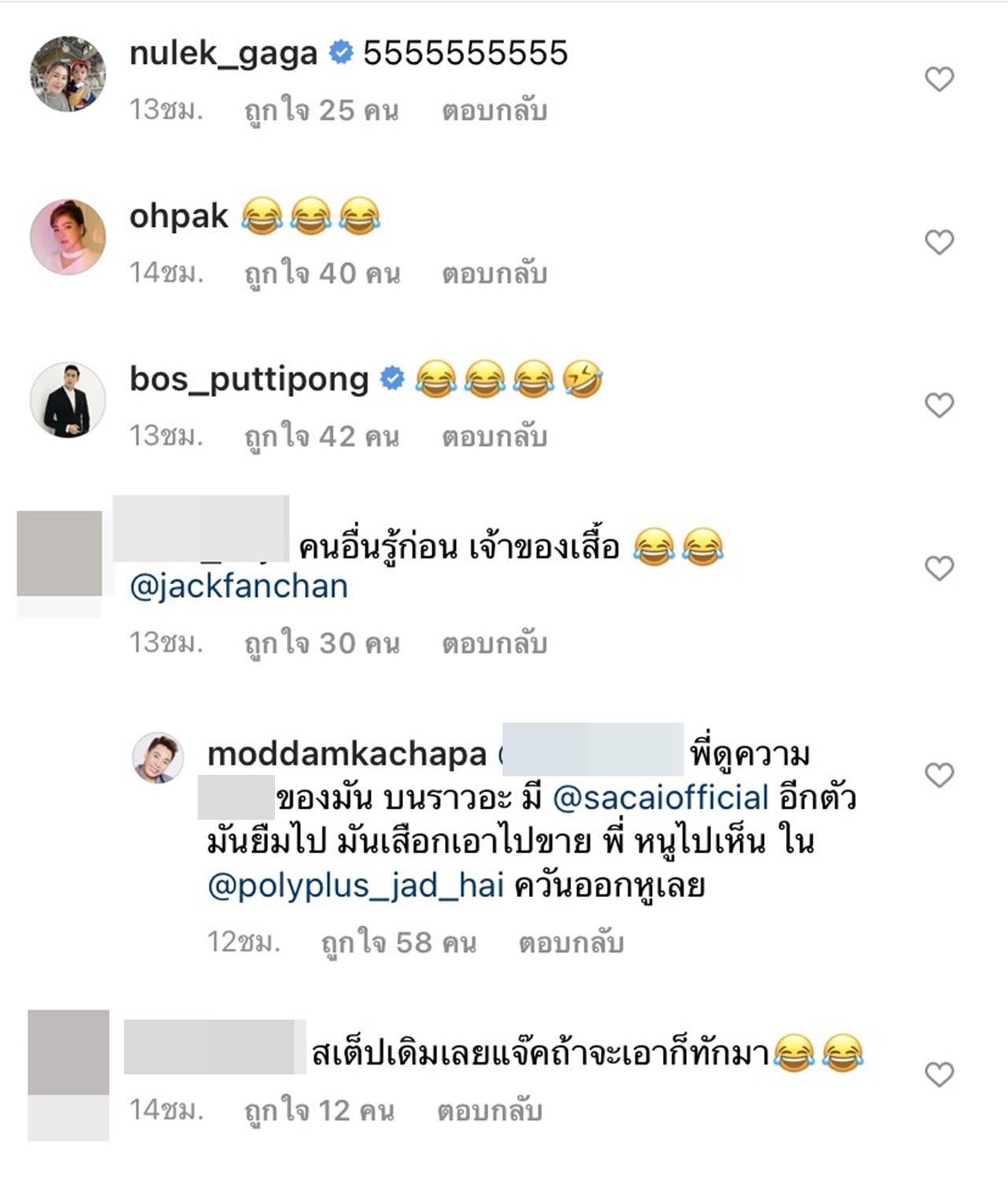 โดยงานนี้ แจ๊ค แฟนฉัน ได้โพสต์รูปที่ตัวเองกำลังไลฟ์ขายของ พร้อมกับแคปชั่นว่า "_ูบอกแล้วว่าอย่าแชร์ต่อ #ไม่กล้าไปเจอตัวเลย" ซึ่งงานนี้ มดดำ คชาภา ก็ได้เข้ามาด่าแหลกด่ายับในคอมเมนต์ว่า
