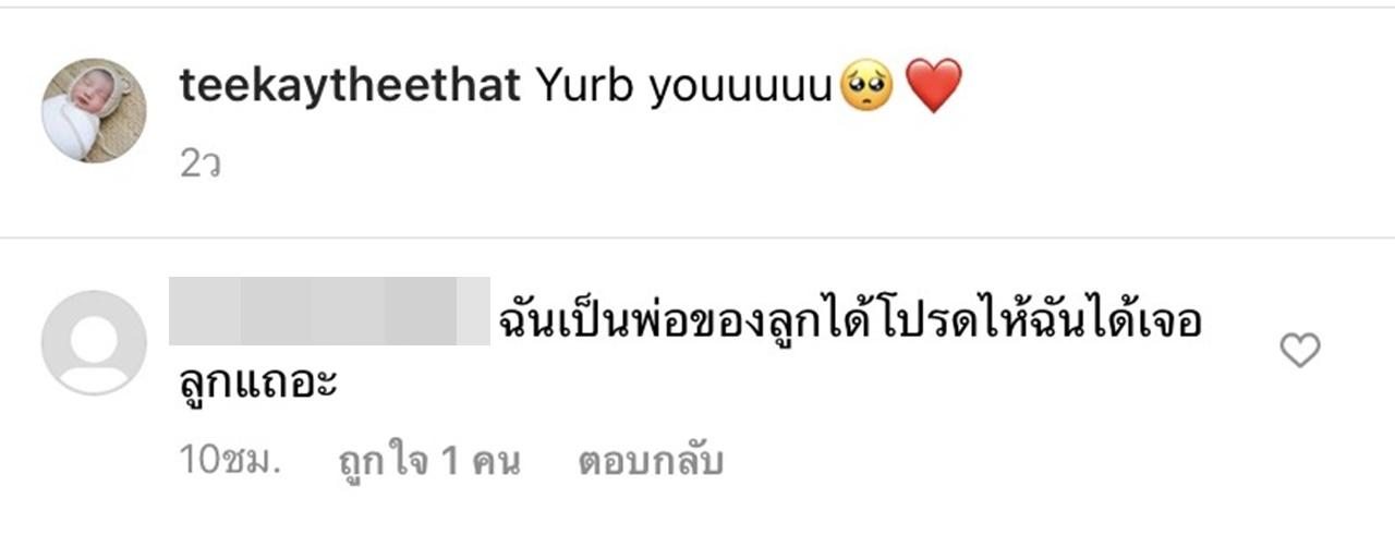 โดยแอคเคาต์ปริศนาดังกล่าว ได้คอมเมนต์ต่อคอมเมนต์ของ ตั๊ก มยุรา ว่า "ฉันเป็นพ่อของเด็ก ฉันขอให้แม่ปล่อยให้ลูกไปพบพ่อ ลูกมีพ่อ, ทั้งสองไม่มีความสุขด้วยกันไม่จำเป็นต้องให้เด็กเสียพ่อไป โปรดติดต่อฉันโดยเร็วที่สุดเพื่อพูดคุยเกี่ยวกับคำถามเกี่ยวกับเด็กอย่างใจเย็น, ฉันเป็นพ่อของลูกได้โปรดให้ฉันได้เจอลูกเถอะ, ฉันอยากเจอลูก ขอร้องอย่าเอาความโมโหของคุณมาลงโทษผมแบบนี้เลย ผมก็รักลูกเหมือนกัน ผมขอร้อง, ฉันเป็นพ่อของลูกได้โปรดให้ฉันได้เจอลูกเถอะ"