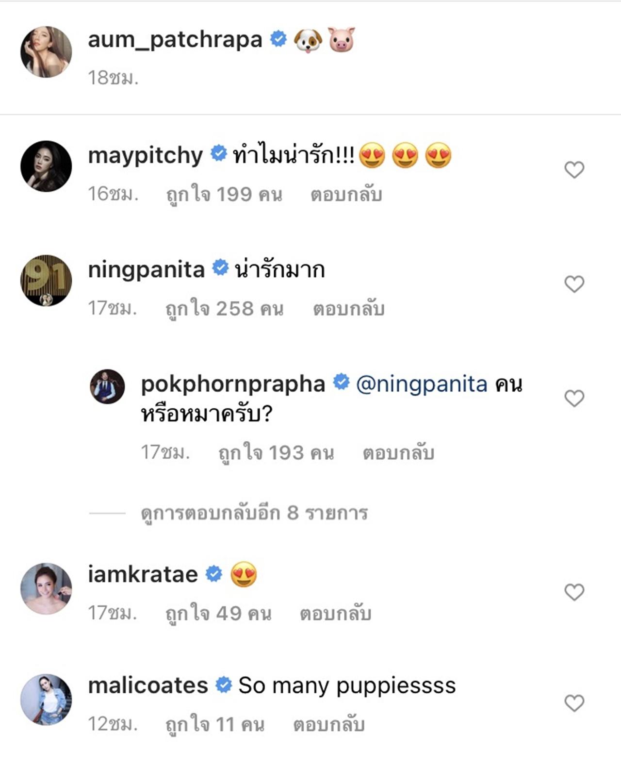 งานนี้ทำเอาทั้งเพื่อนๆ และแฟนคลับมาแซวสนั่น รวมถึง หนิง ปณิตา ที่คอมเมนต์ว่า "น่ารักมาก" จน ไฮโซพก ตอบไปว่า "คนหรือหมาครับ?".