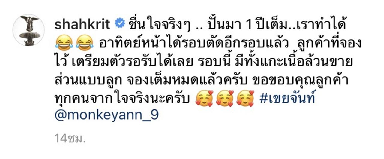 "ชื่นใจจริงๆ ปั้นมา 1 ปีเต็ม..เราทำได้ อาทิตย์หน้าได้รอบตัดอีกรอบแล้ว ลูกค้าที่จองไว้ เตรียมตัวรอรับได้เลย รอบนี้มีทั้งแกะเนื้อล้วนขาย ส่วนแบบลูก จองเต็มหมดแล้วครับ ขอขอบคุณลูกค้าทุกคนจากใจจริงนะครับ #เขยจันท์ @monkeyann_9"