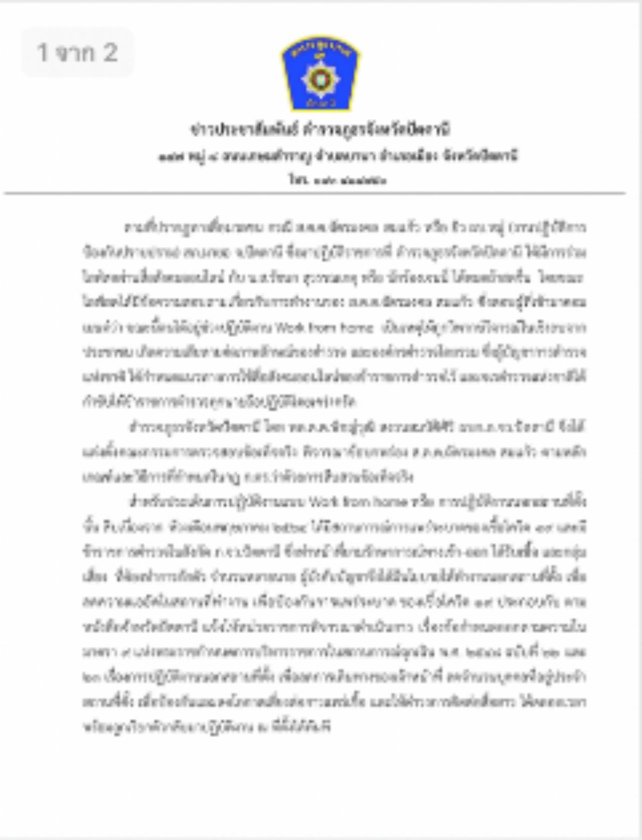 "บัดนี้ คณะกรรมการตรวจสอบข้อเท็จจริง ได้ดําเนินการเสร็จสิ้นแล้ว ปรากฏข้อเท็จจริงว่าการกระทําของ ส.ต.ต.ฉัตรมงคล สมแก้ว หรือยิว มีการใช้สื่อสังคมออนไลน์ผ่านเฟซบุ๊กส่วนตัว ชื่อ รัชนก สุวรรณเกตุ เมื่อวันศุกร์ที่ ๒๑ พ.ค.๒๕๖๔ เวลาประมาณ ๒๐.๐๐ น. และได้มีการกล่าวถึงในประเด็นคําพูด “Work From Home” ซึ่งเป็นการใช้คําพูดที่รู้เท่าไม่ถึงการณ์ ขาดการยั้งคิดไตร่ตรอง และไม่อธิบายให้บุคคลทั่วไป ที่ติดตามทางสื่อสังคมออนไลน์ได้เข้าใจอย่างถูกต้อง จึงทําให้ประชาชนเกิดการวิพากษ์วิจารณ์ในทางลบ ส่งผลทําให้เกิดความเสียหายต่อภาพลักษณ์ของหน่วยงานและสํานักงานตํารวจแห่งชาติ