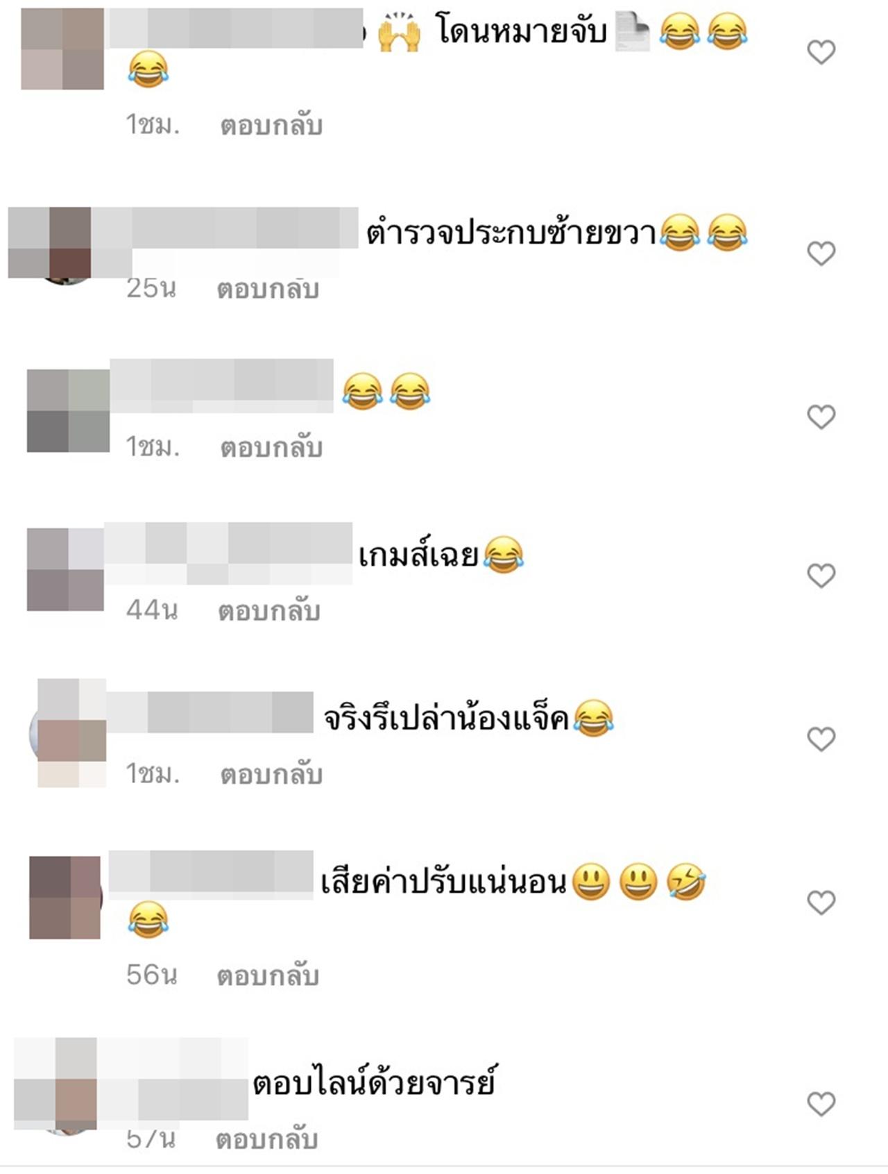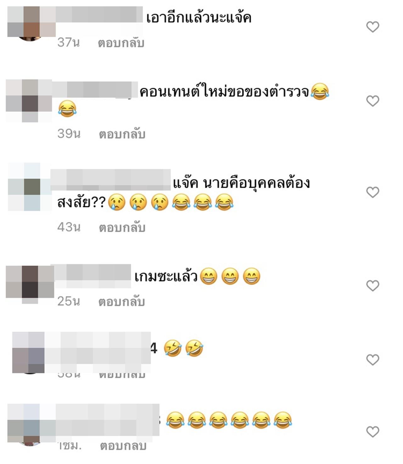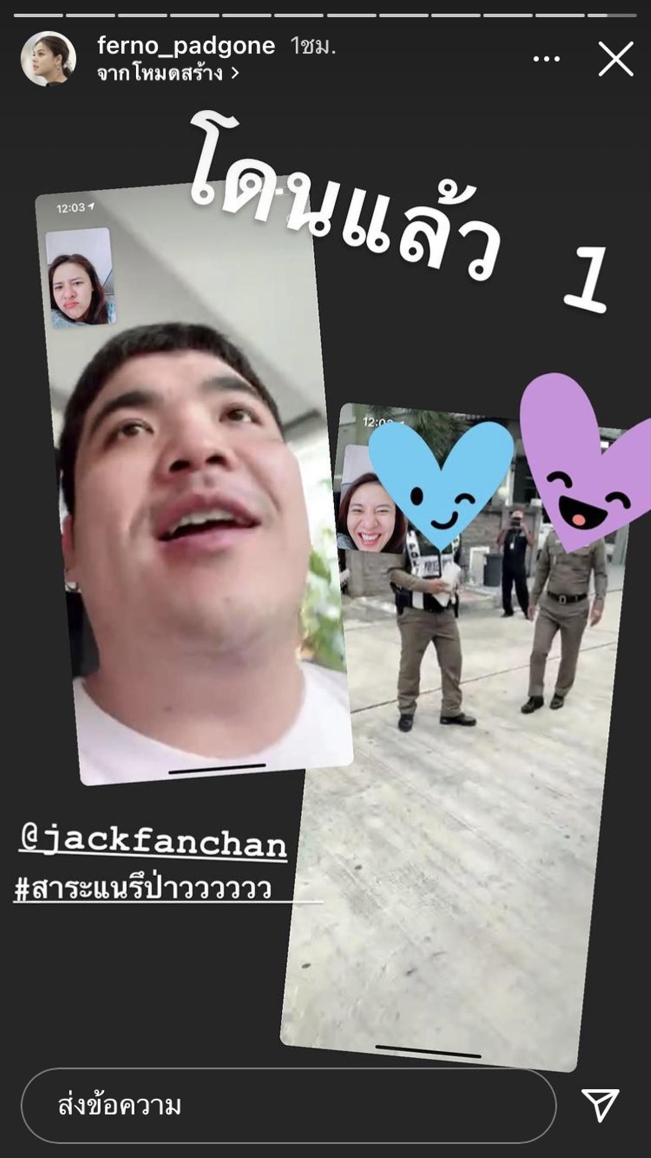 แต่ล่าสุด แจ๊ค ก็ได้โพสต์ภาพพร้อมตำรวจอีก 3 นายที่ยืนประกบ และเขียนแคปชั่นว่า "ผมนั่งทำอุปกรณ์ไม่ได้นอนเลยครับจ่า #เกือบเกมแล้วกู #กูว่ากูเลิกทำรายการขอของดาราดีกว่า" ด้าน ใบเฟิร์น พัสกร ก็ได้โพสต์ไอจีสตอรี่พร้อมเขียนว่า "ล่าสุดโดนรวบจ่ะ @jackfanchan"