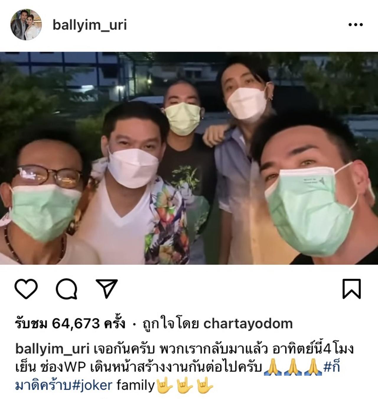 "เจอกันครับ พวกเรากลับมาแล้ว อาทิตย์นี้4โมงเย็น ช่องWP เดินหน้าสร้างงานกันต่อไปครับ #ก็มาดิคร้าบ #joker family" ซึ่งแฟนๆ ที่ติตตามต่างก็ดีใจและส่งกำลังใจให้เป็นจำนวนมาก.