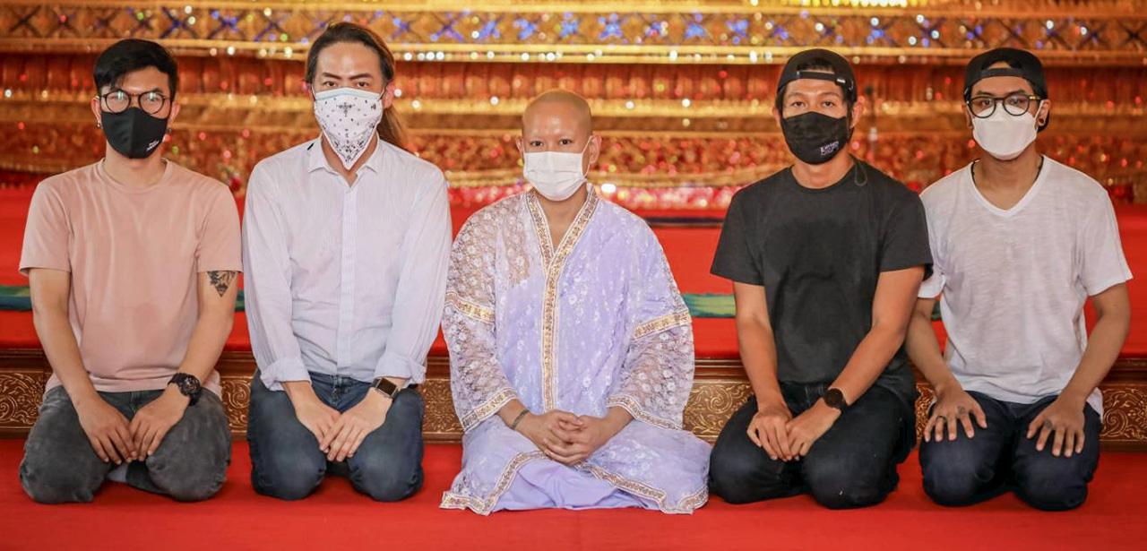 “พวกเขาก็ยินดี และให้กำลังใจด้วย กลัวเราจะไม่สึก (หัวเราะ) หยอกเล่นกันในกลุ่มมากกว่า ผมก็แหย่ไป บอกว่าก็ไม่แน่นะ แต่ห่วงเจี๊ยบที่สุด กลัวเขาไม่มีรายได้ เพราะเปรมเขาก็ขายเสื้อผ้า มีอาชีพที่ 2 ที่ 3 อาจารย์ฟ้าเขาก็มีความสามารถหลายด้าน ฐานะทางบ้านก็ดีอยู่แล้ว แต่เจี๊ยบนี่ลาออกจากงานมาเพื่อเล่นดนตรีกับผมเลย ก็ต้องดูแลเขาให้ดีที่สุด เพราะเขาไม่ได้มีรายได้ทางไหน ก็บอกเพื่อนๆว่าสึกแหละ พอดีเดี๋ยวโควิดหายก็กลับไปเล่นดนตรีเหมือนเดิม เชื่อว่าหลังจากสึกชีวิตน่าจะดีขึ้น และผมก็จะอุทิศบุญกุศลเผื่อแผ่ไปถึงทุกๆคนด้วย ขอบคุณทุกๆคนนะครับที่ส่งจิตอันกุศลมา ผู้หลักผู้ใหญ่หลายๆท่านแฟนคลับหลายๆกลุ่ม อยากจะมาอนุโมทนาด้วย ก็ขอบพระคุณมากครับ ก็ขอให้ได้บุญกลับไปเยอะๆ และนำธรรมะไปปฏิบัติในชีวิตประจำวันด้วย ในชีวิตที่ผ่านมาผมก็อาจจะไปทำอะไรให้ใครไว้หลายๆท่าน ทั้งโดยเจตนาหรือไม่ได้เจตนาก็ดี ก็อยากจะขออโหสิกรรมด้วยนะครับ”.