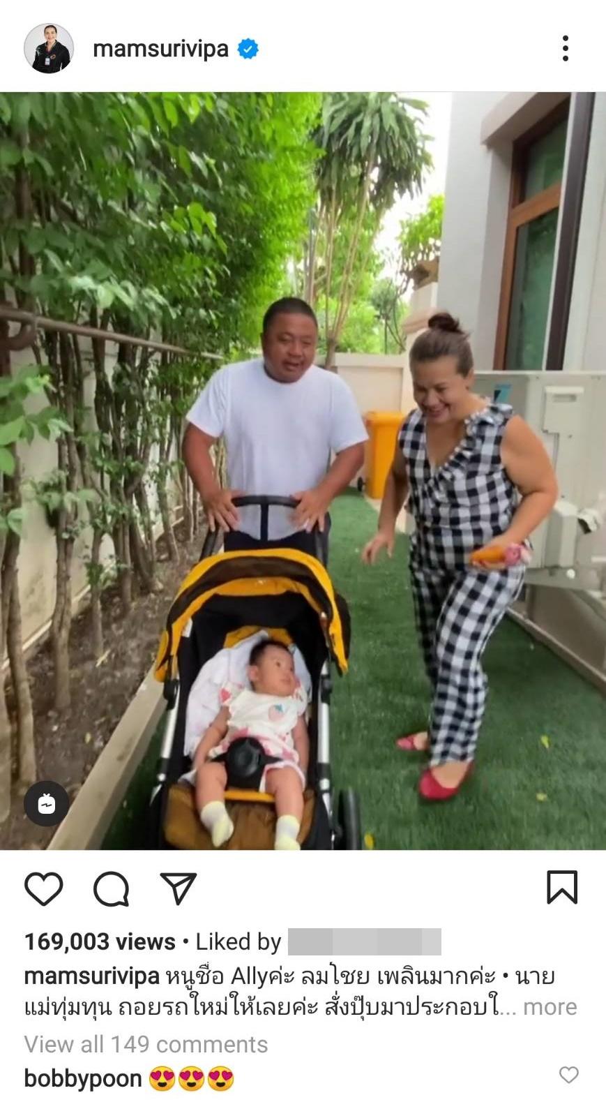 ท่ามกลางคอมเมนต์จากแฟนๆ ที่แสดงความยินดี รวมทั้งชื่นชมความน่ารักของหนูน้อยแอลลี่เต็มไอจี อาทิ เบบี๋งง หม่ามี้ทำอะไรหนูคะ, เอ็นดู ขอต้อนรับมนุษย์แม่ค่ะ, พี่หนูแหม่มน่ารักมากๆ แม่อารมณ์ดีแบบนี้ เบบี้น้อยต้องอารมณ์ดีแน่ๆ เลยค่ะ ฯลฯ