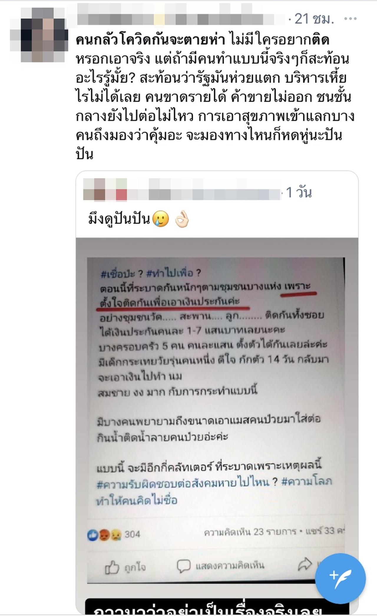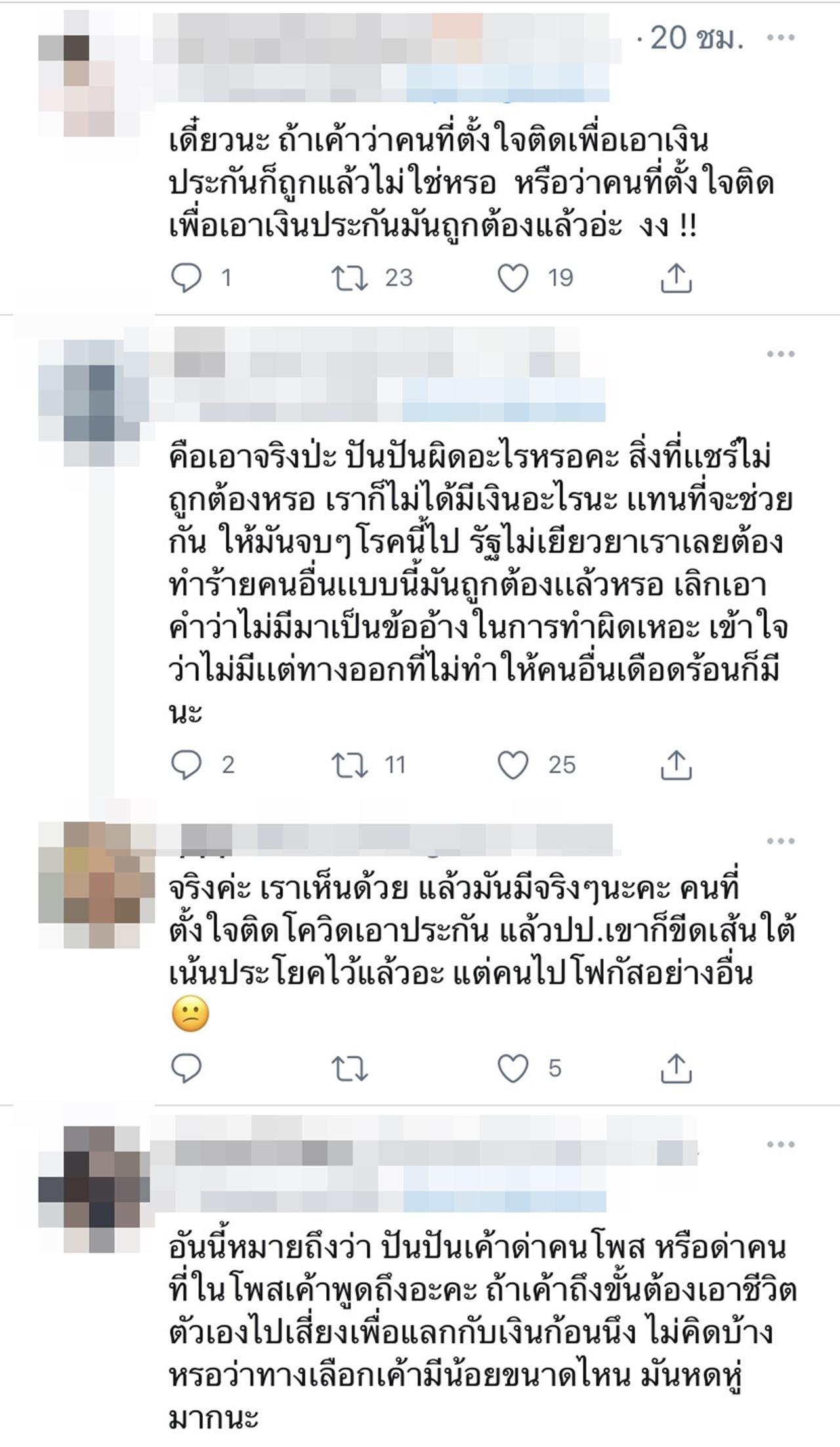 มีคนในชุมชนบางแห่ง ตั้งใจติดโควิดเพื่อเอาเงินประกัน บางคนพยายามถึงขนาดเอาแมสก์คนป่วยมาใส่ต่อ กินน้ำติดน้ำลายคนป่วย
