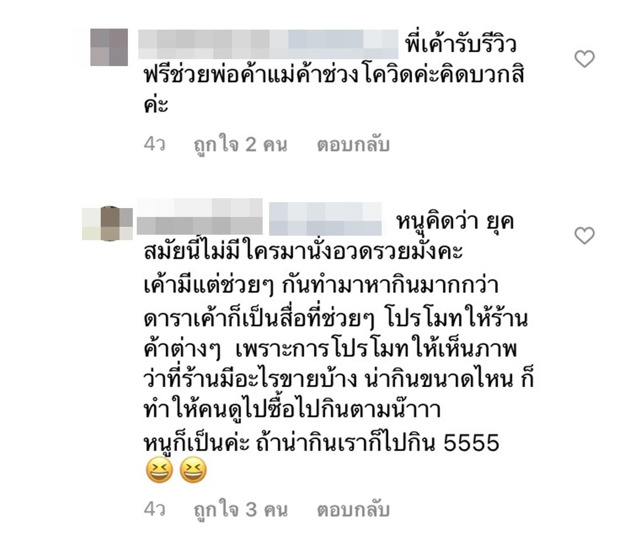 และบอกต่อว่า "อ้อแล้วอีกหลายๆร้านนอกจากลงให้ก้อยังอุดหนุนด้วยค่ะ".