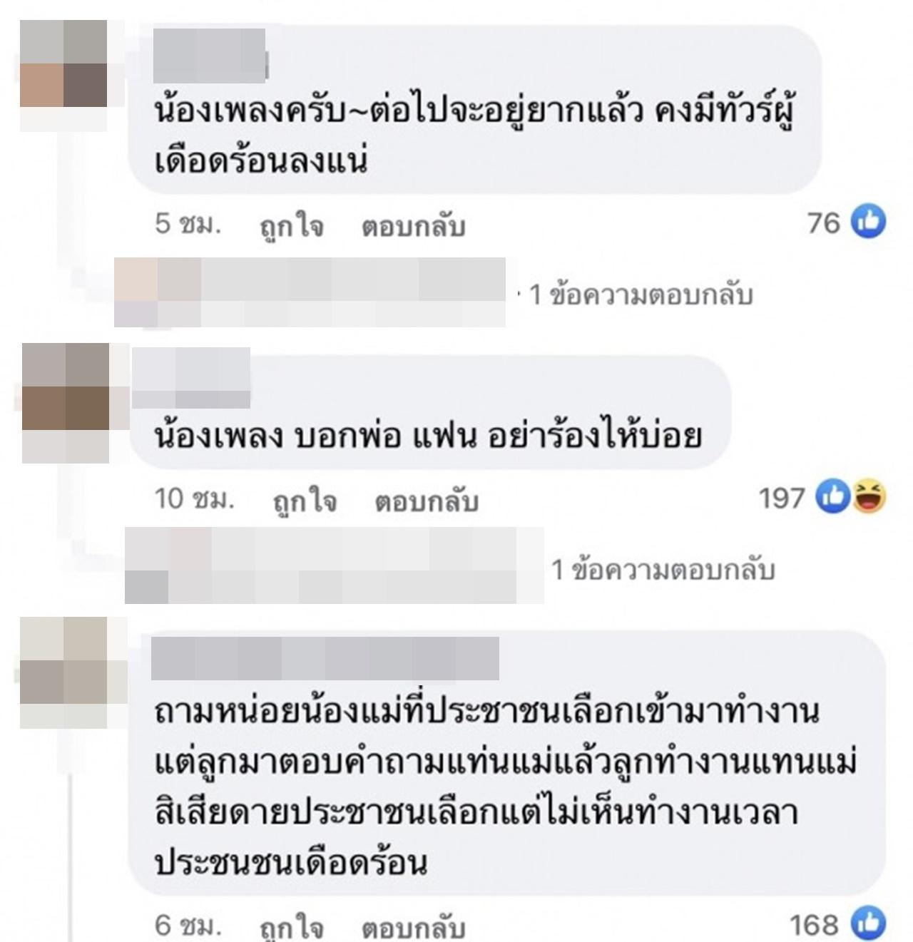ด้านลูกสาว เพลง ชนม์ทิดา ก็ได้ออกมาเคลื่อนไหว พร้อมกับช่วยแชร์ข่าวที่ แม่ตู่ ได้ลงพื้นที่ช่วยเหลือชาวบ้านที่ได้รับผลกระทบ แต่หลังจากนั้น เพลง ก็ได้ตั้งอินสตาแกรมเป็นส่วนตัว ด้านแฟนหนุ่ม เป๊ก เศรณี ลูกชายของ นายอนุทิน ชาญวีรกูล รองนายกรัฐมนตรีและรัฐมนตรีว่าการกระทรวงสาธารณสุข ก็ตั้งอินสตาแกรมเป็นส่วนตัวเช่นกัน