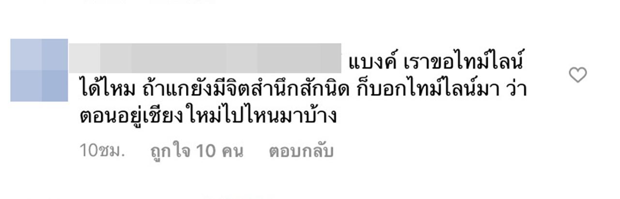 และ แบงค์ เราขอไทม์ไลน์ได้ไหม ถ้าแกยังมีจิตสำนึกสักนิด ก็บอกไทม์ไลน์มาว่าตอนอยู่เชียงใหม่ไปไหนมาบ้าง, ไทม์ไลน์นี่เปิดหมดละยังครับ ตีมึนหรอ