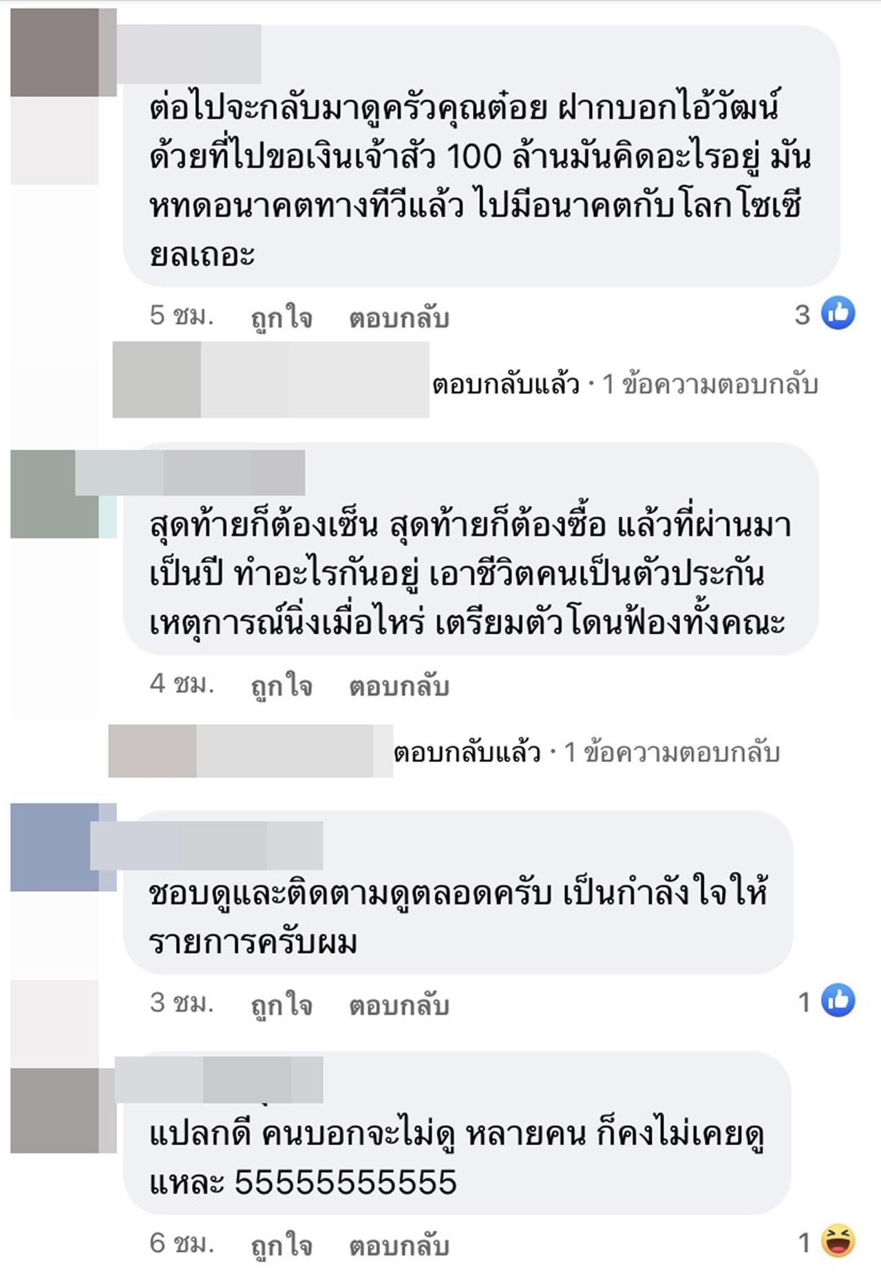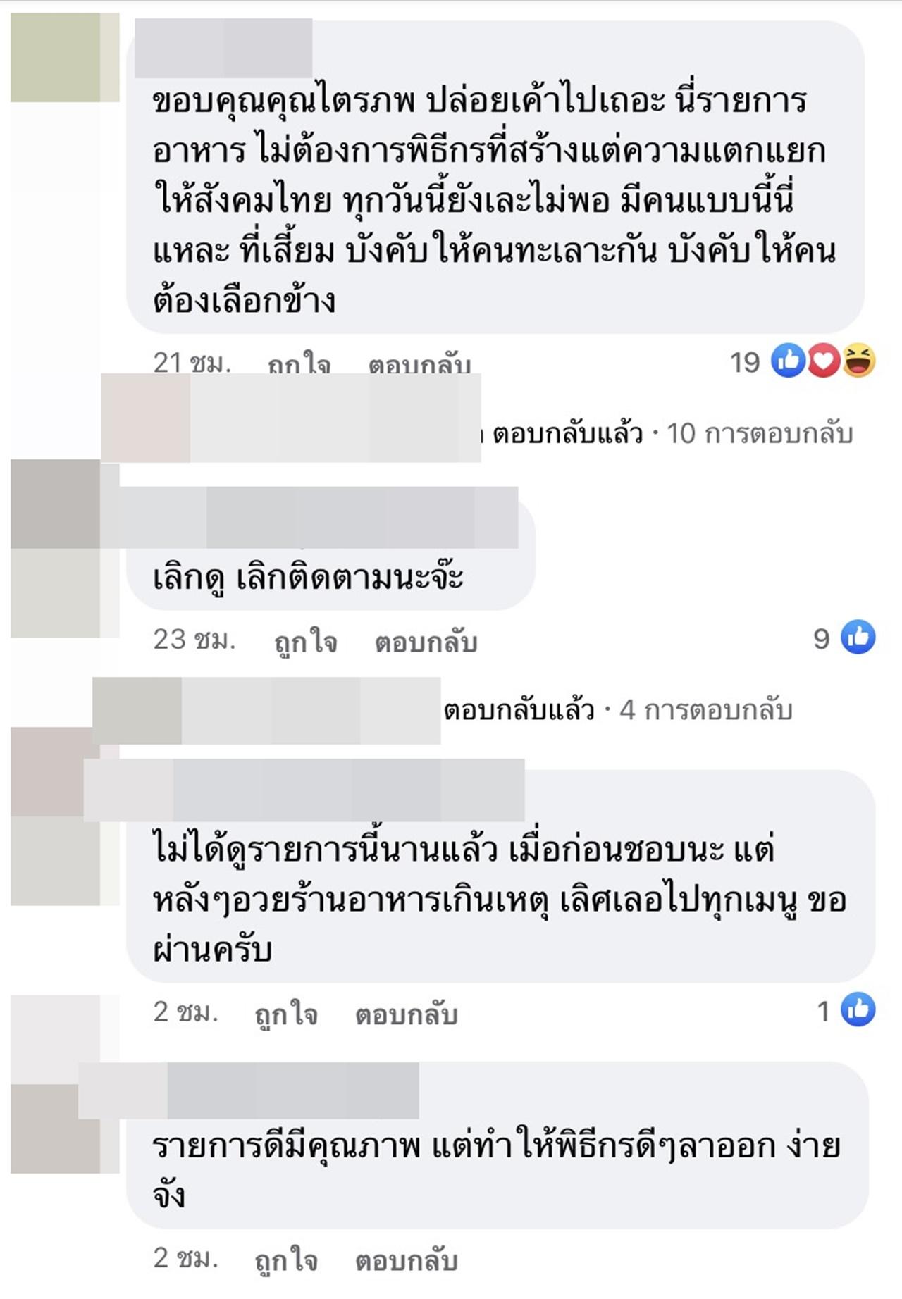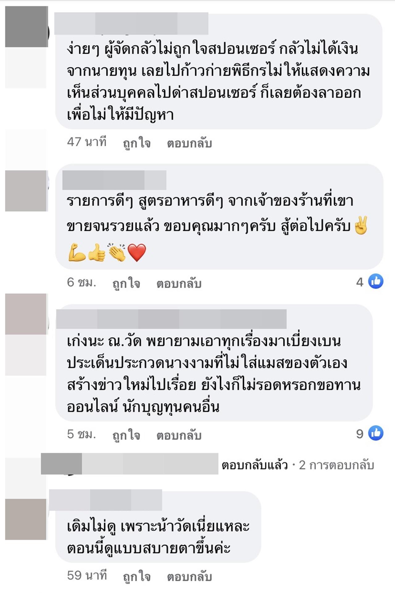 เเต่ก็ยังมีชาวเน็ตบางส่วนได้เข้ามาคอมเมนต์ให้กำลังใจพิธีกรและรายการเช่นกันว่า "รายการไม่ได้มีแต่คุณณวัฒน์คนเดียวไง รายการยังมีทีมงานอีกเยอะแยะมากมายต้องดูแล จะเอาความคิดตัวเองเป็นใหญ่ไม่ได้ ยังมีอีกกี่ปากกี่ท้อง ที่ยังรอเงินเดือนจากรายการนี้ เรื่องบางเรื่องก็ควรแยกออกจากการเมือง ทุกคนยังต้องกินต้องใช้".